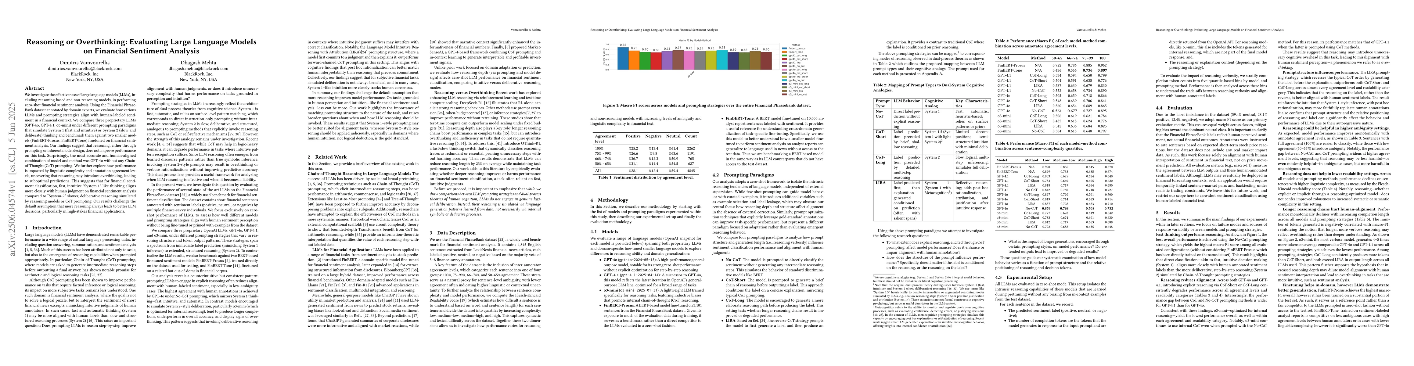 Demonstrates that intuitive, fast thinking aligns better with human judgment in financial sentiment classification than deliberative reasoning simulated by LLMs or CoT prompting.