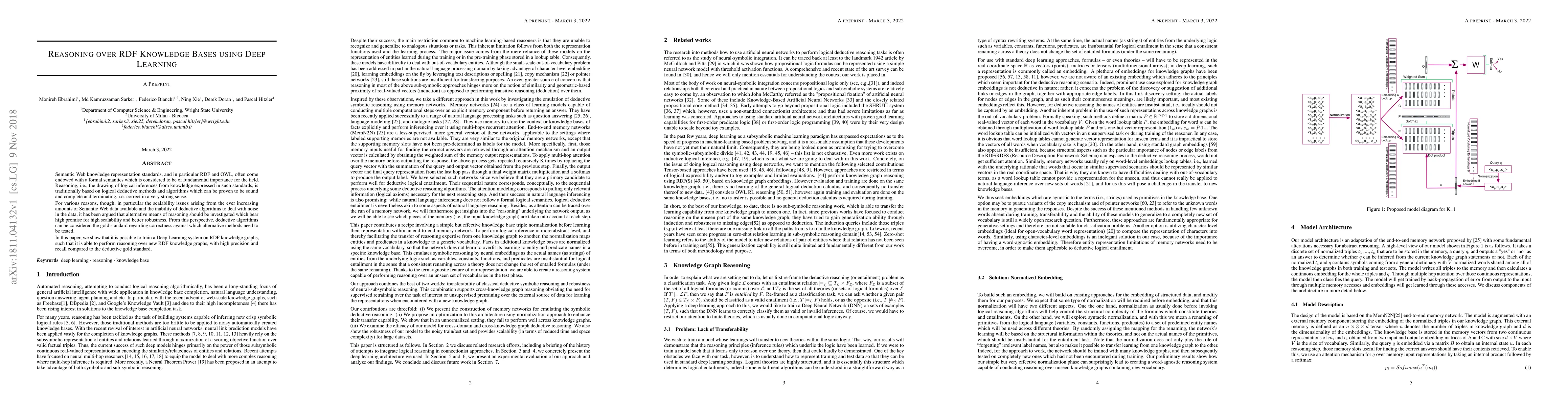 This paper explores the use of deep learning to reason over RDF knowledge bases, demonstrating that a trained Deep Learning system can perform logical inferences with high precision and recall, rivaling traditional deductive algorithms, despite scalability and noise issues with the latter.