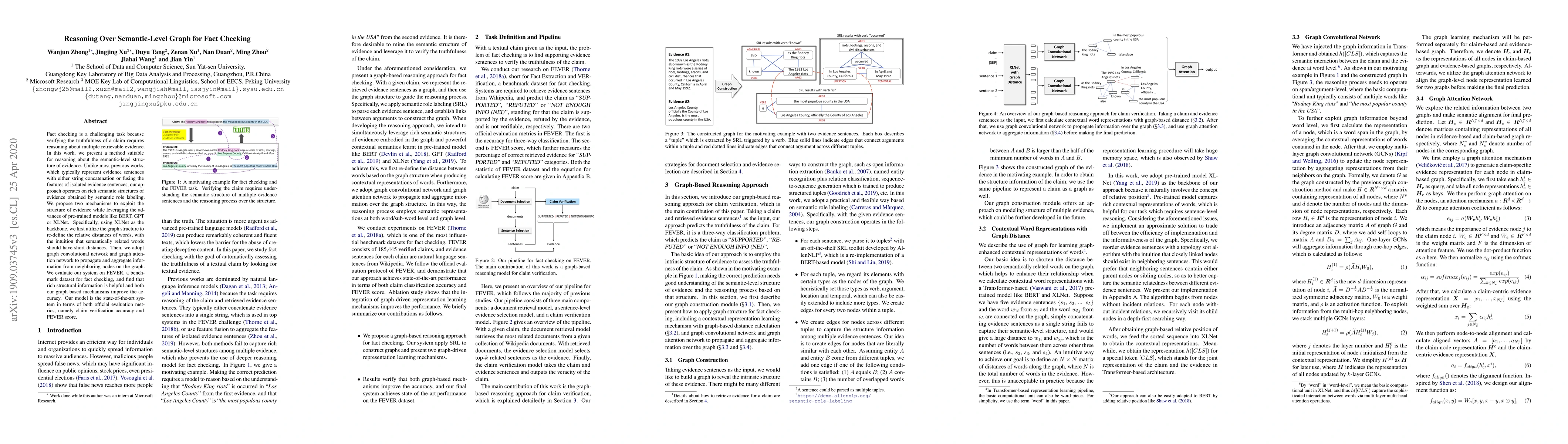 This paper proposes a novel method for fact checking that leverages the semantic structure of evidence using semantic role labeling and graph-based mechanisms. By utilizing XLNet and graph convolutional networks, the approach improves claim verification accuracy and achieves state-of-the-art results on the FEVER dataset.