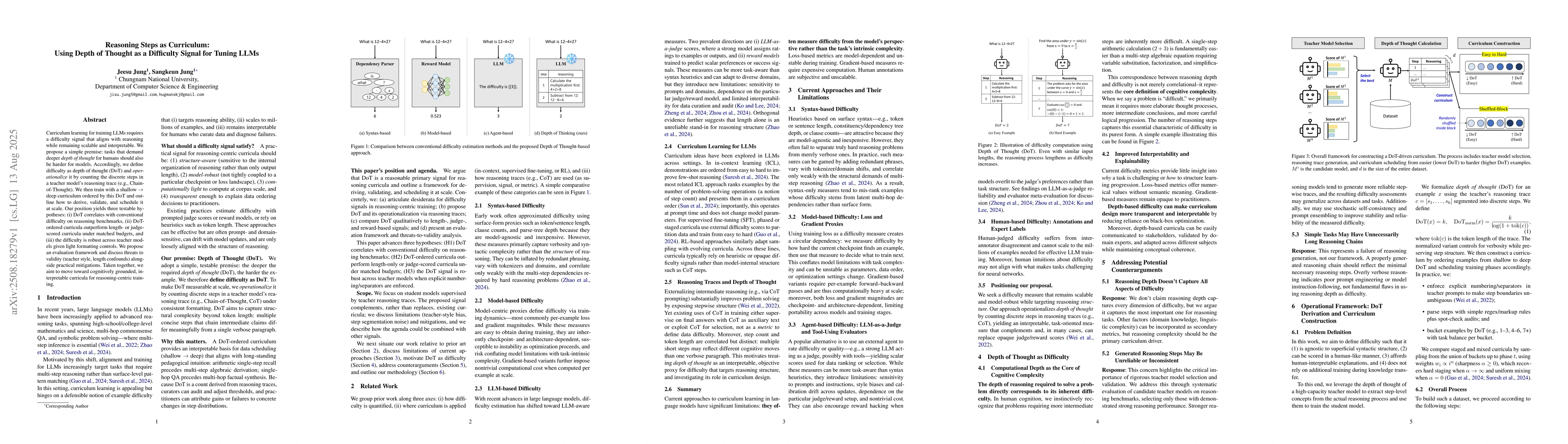 Curriculum learning for training LLMs requires a difficulty signal that aligns with reasoning while remaining scalable and interpretable. We propose a simple premise: tasks that demand deeper depth of thought for humans should also be harder for models. Accordingly, we define difficulty as depth of thought (DoT) and operationalize it by counting the discrete steps in a teacher model's reasoning trace (e.g., Chain-of-Thought). We then train with a shallow to deep curriculum ordered by this DoT and outline how to derive, validate, and schedule it at scale. Our position yields three testable hypotheses: (i) DoT correlates with conventional difficulty on reasoning benchmarks, (ii) DoT-ordered curricula outperform length- or judge-scored curricula under matched budgets, and (iii) the difficulty is robust across teacher models given light formatting controls. We propose an evaluation framework and discuss threats to validity (teacher style, length confounds) alongside practical mitigations. Taken together, we aim to move toward cognitively grounded, interpretable curricula for reasoning-centric training.