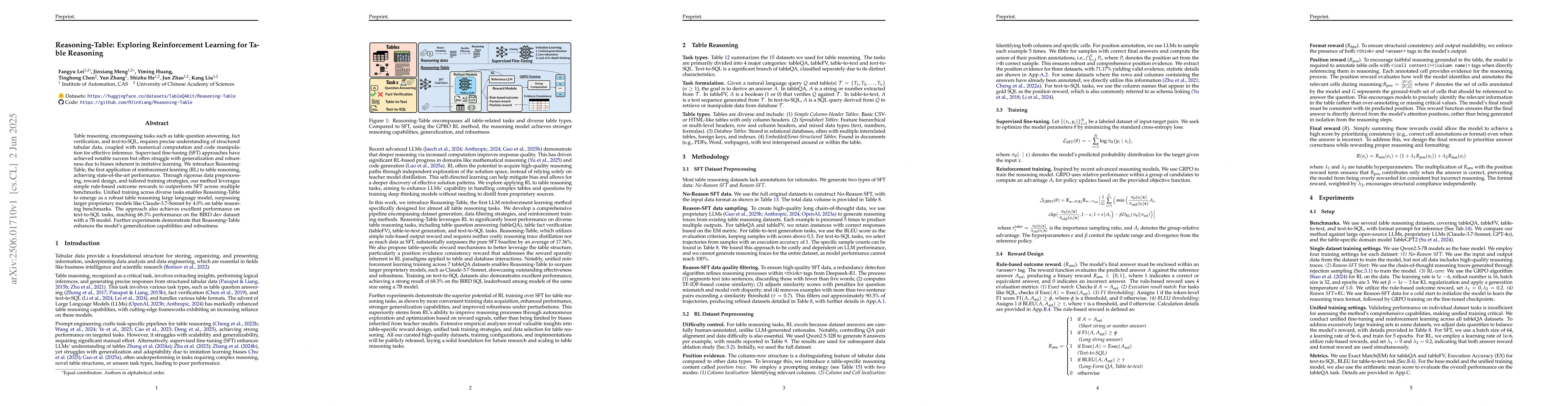 This research introduces Reasoning-Table, a reinforcement learning approach that achieves state-of-the-art performance in table reasoning tasks, surpassing larger proprietary models like Claude-3.7-Sonnet by 4.0%.