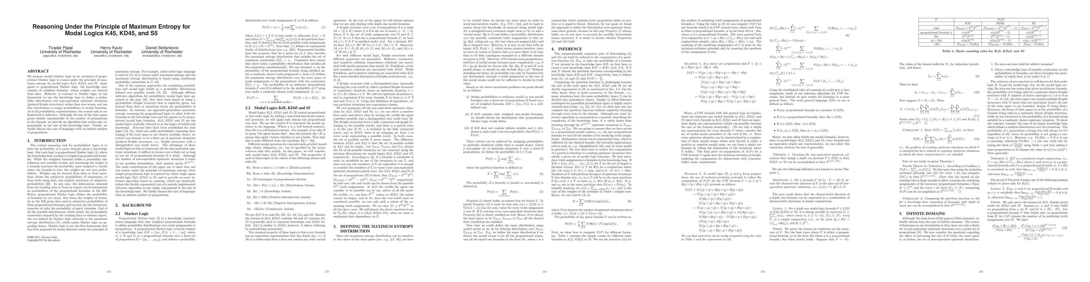 This paper introduces modal Markov logic, extending propositional Markov logic to modal logics K45, KD45, and S5. It uses weighted formulas learned from data to define a probability distribution over epistemic situations, assigning probabilities to modal formulas. Despite a doubly exponential state space, the authors provide an efficient, exponentially scaling inference algorithm. The paper also touches upon infinite proposition languages.