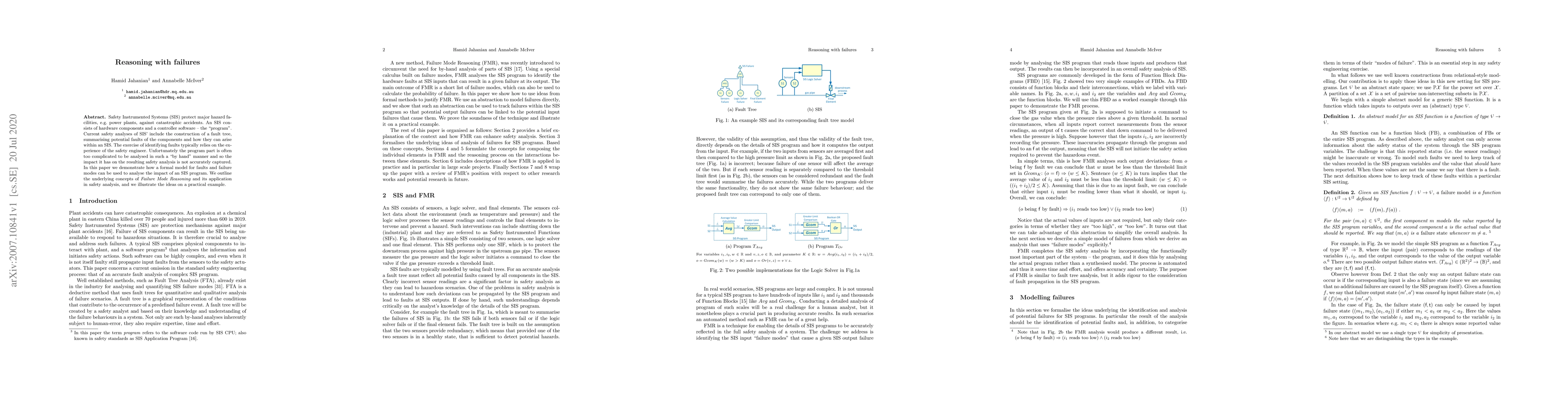 Safety Instrumented Systems (SIS) protect major hazard facilities, e.g. power plants, against catastrophic accidents. An SIS consists of hardware components and a controller software -- the ``program''. Current safety analyses of SIS' include the construction of a fault tree, summarising potential faults of the components and how they can arise within an SIS. The exercise of identifying faults typically relies on the experience of the safety engineer. Unfortunately the program part is often too complicated to be analysed in such a ``by hand" manner and so the impact it has on the resulting safety analysis is not accurately captured. In this paper we demonstrate how a formal model for faults and failure modes can be used to analyse the impact of an SIS program. We outline the underlying concepts of \emph{Failure Mode Reasoning} and its application in safety analysis, and we illustrate the ideas on a practical example.