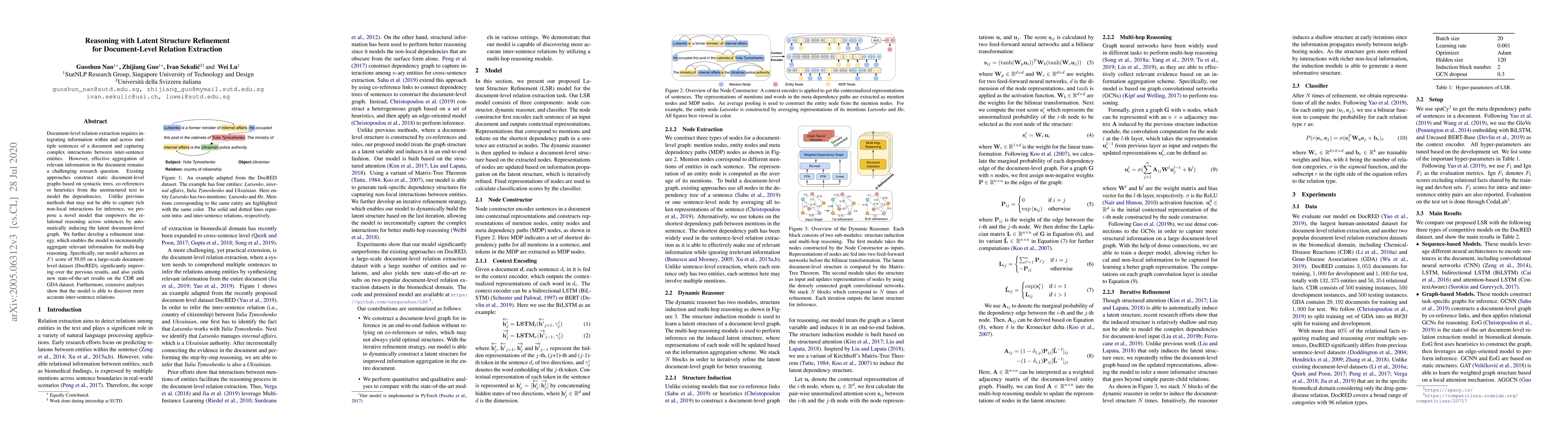 This research introduces a novel model for document-level relation extraction that dynamically induces latent graphs and refines them incrementally for multi-hop reasoning, achieving significant improvements over previous methods on multiple datasets. The model discovers more accurate inter-sentence relations and sets new state-of-the-art results.