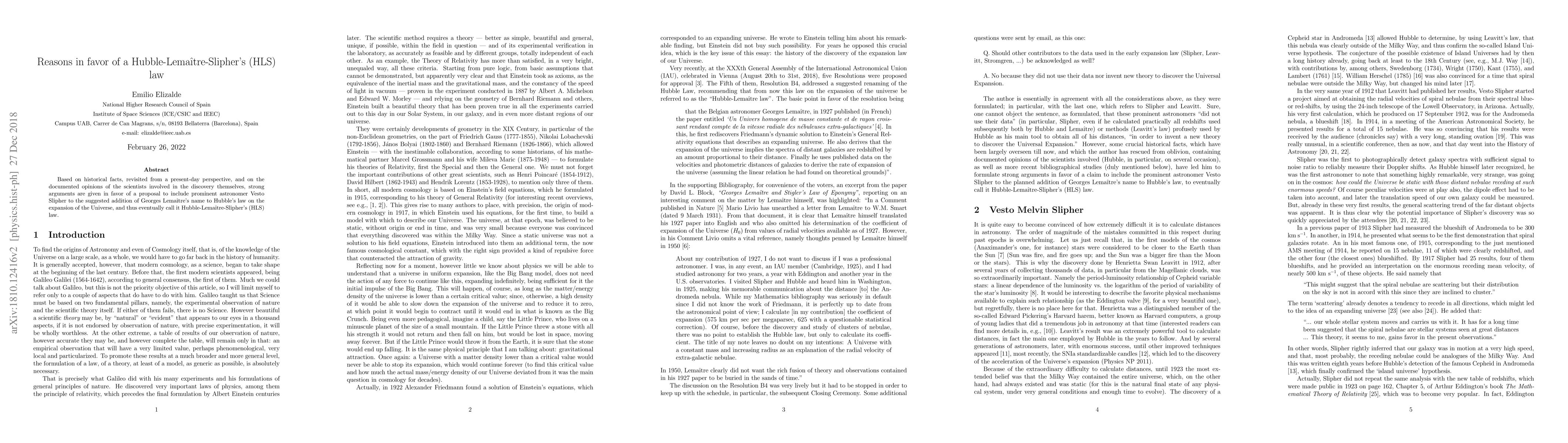 This paper argues for the inclusion of Vesto Slipher in the Hubble-Lemaître law, citing historical facts and the documented opinions of the scientists involved, to rename it the Hubble-Lemaître-Slipher's (HLS) law. It emphasizes the contributions of all three astronomers to the understanding of the Universe's expansion.