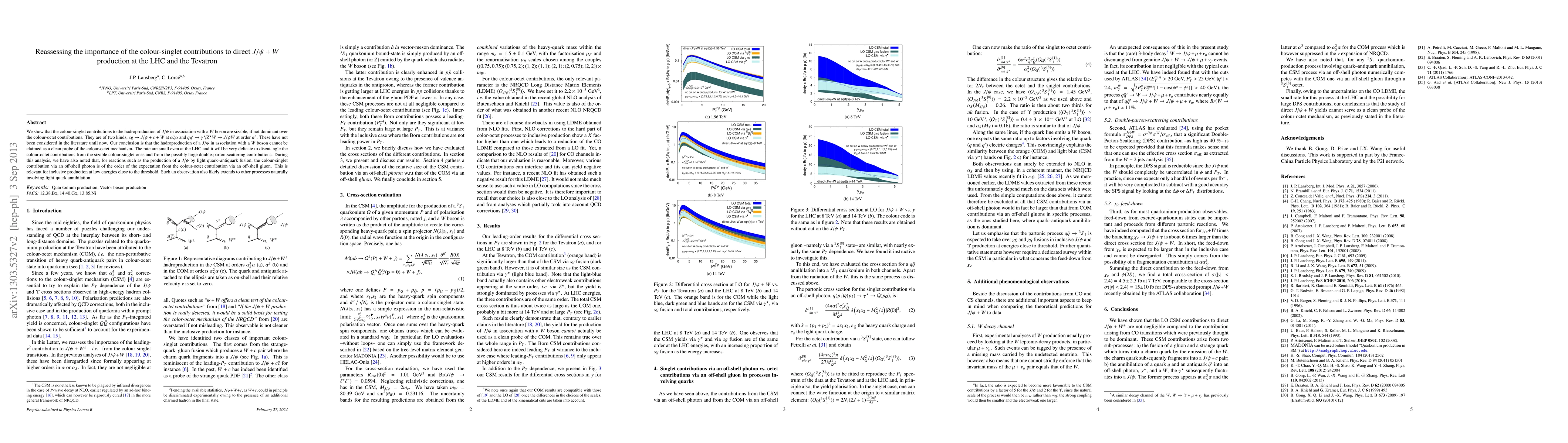 This paper reassesses the importance of colour-singlet contributions to direct J/psi+W production at the LHC and Tevatron, finding these contributions to be significant and potentially dominant over colour-octet contributions. It concludes that J/psi+W production cannot be a clean probe of the colour-octet mechanism due to the complexity of disentangling these contributions.