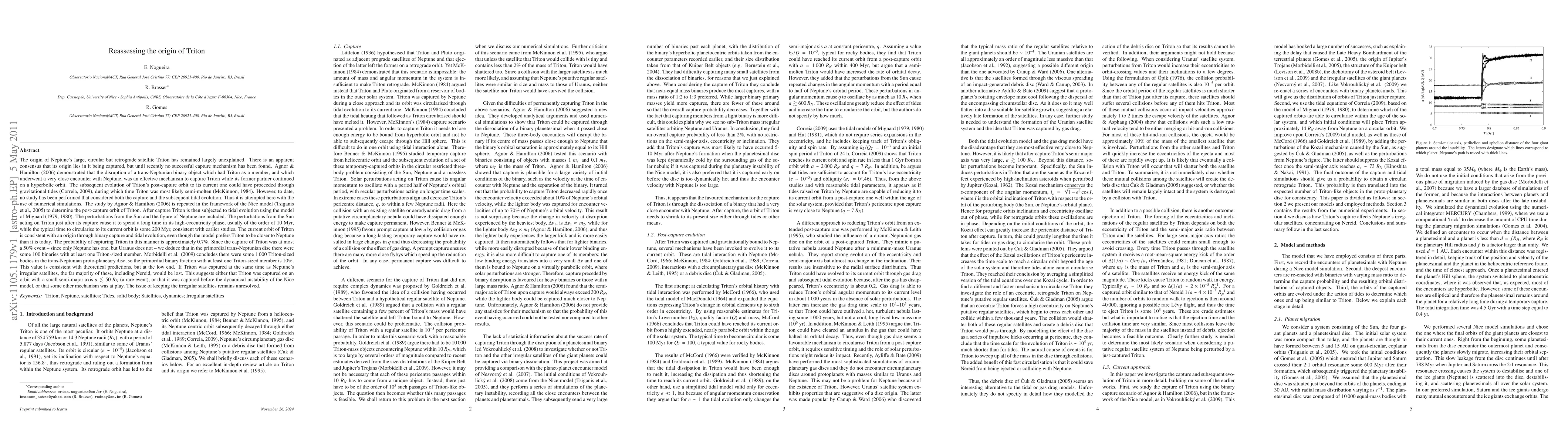 This paper reassesses Triton's origin through binary capture and tidal evolution, finding a 0.7% probability of such capture. It suggests that Triton's current orbit is consistent with this model, but raises unresolved issues regarding the fate of Neptune's irregular satellites.