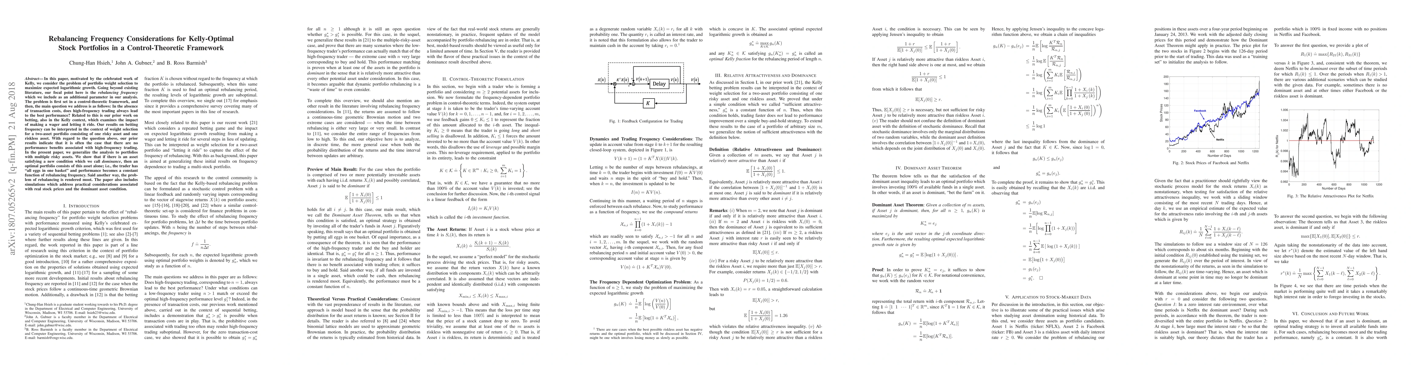 This paper explores the rebalancing frequency in Kelly-optimal stock portfolios within a control-theoretic framework, questioning if high-frequency trading always maximizes performance. It generalizes prior findings on betting frequency to multi-asset portfolios, revealing that optimal portfolios often consist of a single dominant asset, rendering rebalancing frequency irrelevant.