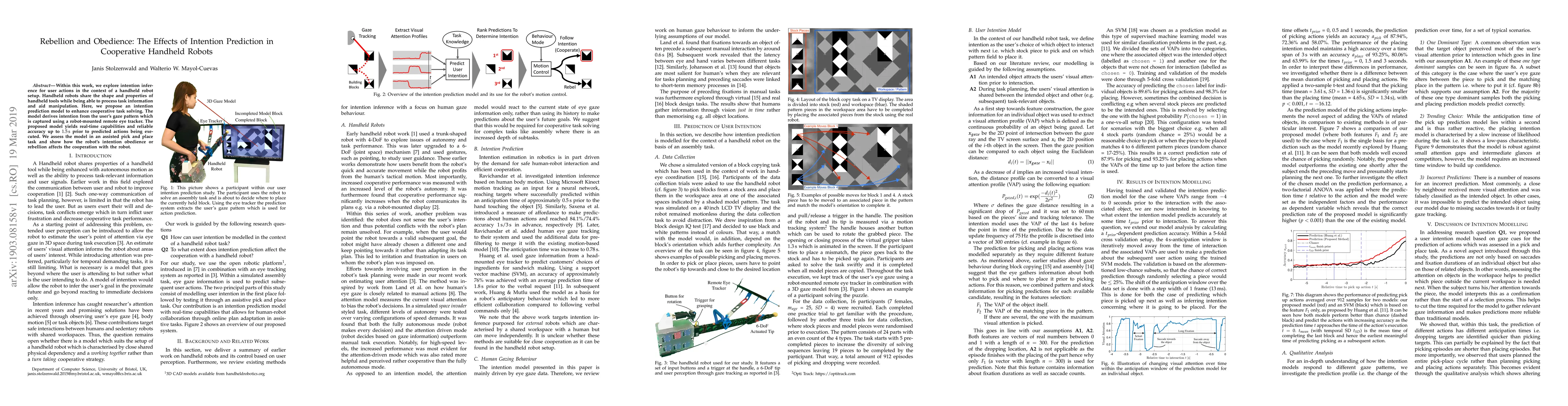 Researchers developed an intention prediction model for handheld robots that uses gaze patterns to predict user actions with real-time accuracy. The model improves cooperation between humans and robots in tasks like pick and place, where the robot's obedience or rebellion affects task success.