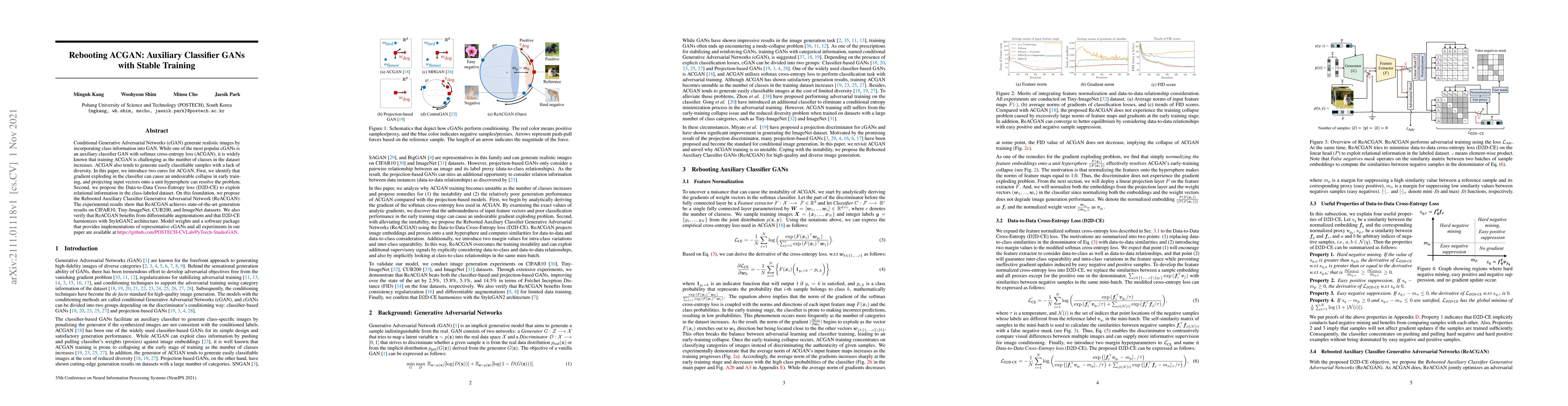 This paper proposes ReACGAN, an improved version of ACGAN, to address training instability and lack of diversity. It introduces vector normalization and a new Data-to-Data Cross-Entropy loss to enhance training stability and sample diversity, achieving state-of-the-art results on multiple datasets.