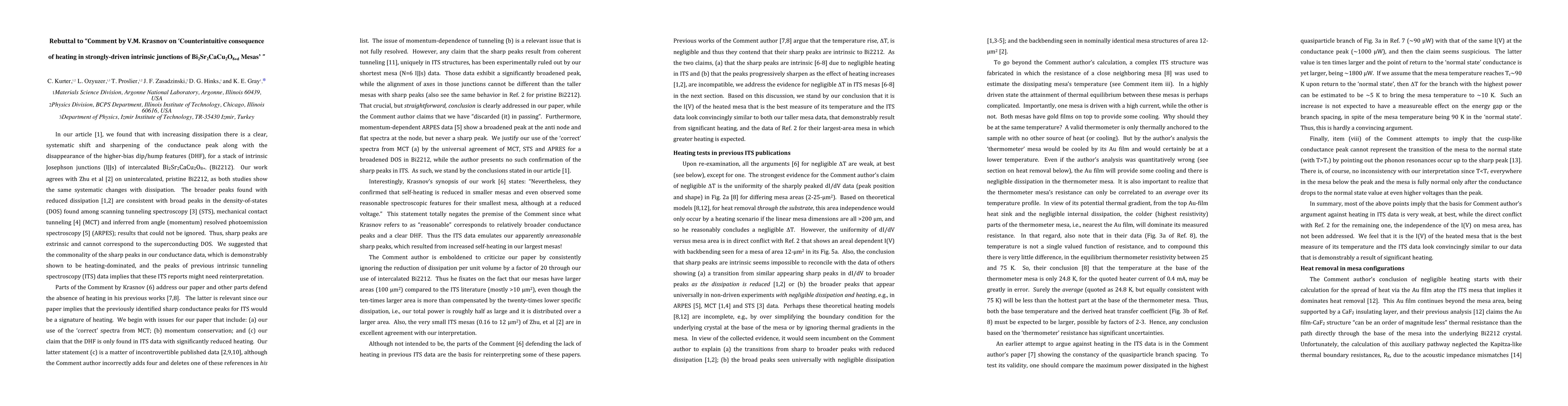 In our article [1], we found that with increasing dissipation there is a clear, systematic shift and sharpening of the conductance peak along with the disappearance of the higher-bias dip/hump features (DHF), for a stack of intrinsic Josephson junctions (IJJs) of intercalated Bi2Sr2CaCu2O8+{\delta} (Bi2212). Our work agrees with Zhu et al [2] on unintercalated, pristine Bi2212, as both studies show the same systematic changes with dissipation. The broader peaks found with reduced dissipation [1,2] are consistent with broad peaks in the density-of-states (DOS) found among scanning tunneling spectroscopy [3] (STS), mechanical contact tunneling [4] (MCT) and inferred from angle (momentum) resolved photoemission spectroscopy [5] (ARPES); results that could not be ignored. Thus, sharp peaks are extrinsic and cannot correspond to the superconducting DOS. We suggested that the commonality of the sharp peaks in our conductance data, which is demonstrably shown to be heating-dominated, and the peaks of previous intrinsic tunneling spectroscopy (ITS) data implies that these ITS reports might need reinterpretation.