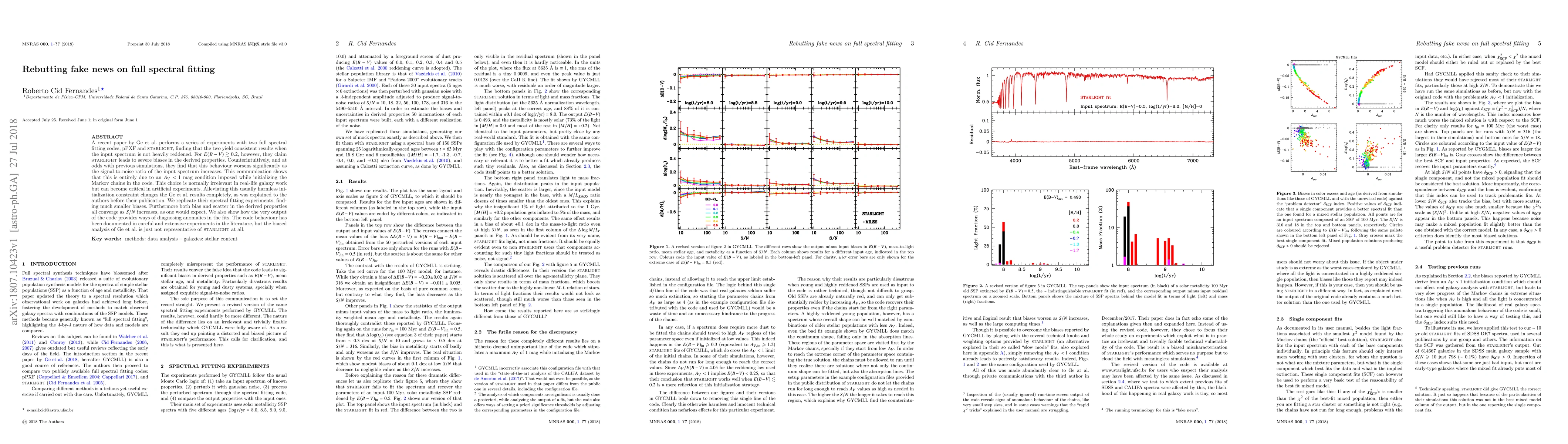 A recent paper by Ge et al. performs a series of experiments with two full spectral fitting codes, pPXF and starlight, finding that the two yield consistent results when the input spectrum is not heavily reddened. For E(B-V) > 0.2, however, they claim starlight leads to severe biases in the derived properties. Counterintuitively, and at odds with previous simulations, they find that this behaviour worsens significantly as the signal-to-noise ratio of the input spectrum increases. This communication shows that this is entirely due to an A_V < 1 mag condition imposed while initializing the Markov chains in the code. This choice is normally irrelevant in real-life galaxy work but can become critical in artificial experiments. Alleviating this usually harmless initialization constraint changes the Ge et al. results completely, as was explained to the authors before their publication. We replicate their spectral fitting experiments, finding much smaller biases. Furthermore both bias and scatter in the derived properties all converge as S/N increases, as one would expect. We also show how the very output of the code provides ways of diagnosing anomalies in the fits. The code behaviour has been documented in careful and extensive experiments in the literature, but the biased analysis of Ge et al. is just not representative of starlight at all.