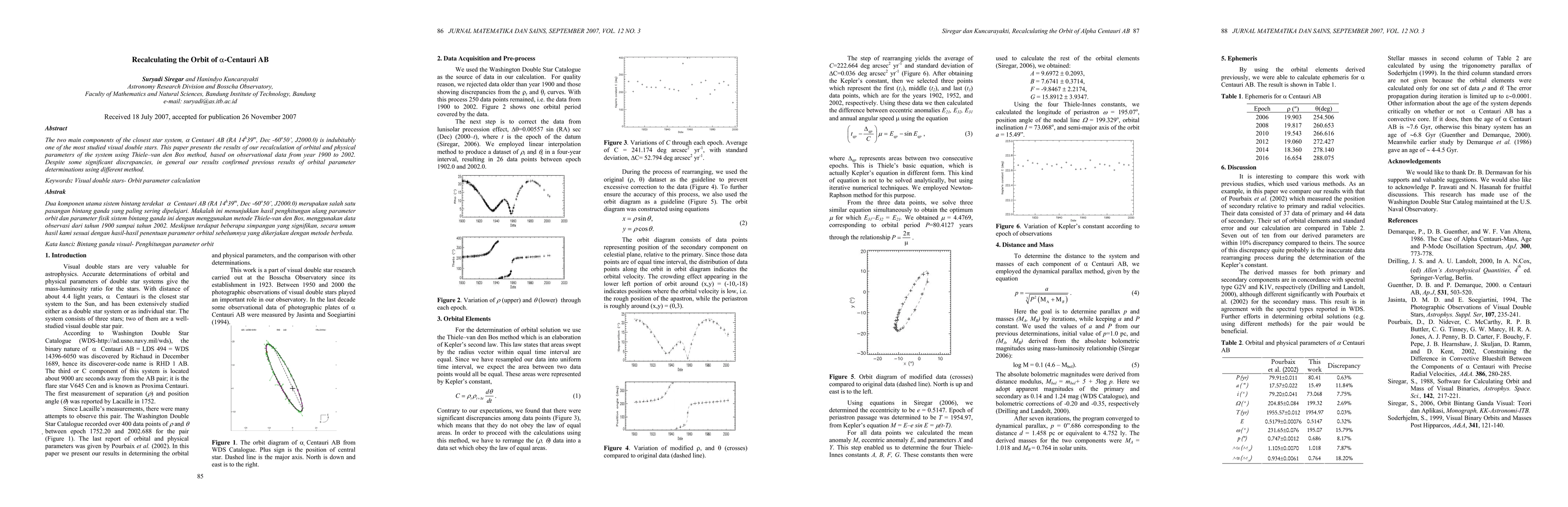 This paper recalculates the orbital and physical parameters of the {\alpha}-Centauri AB system using the Thiele-van den Bos method, based on observational data from 1900 to 2002. Despite some discrepancies, the results generally confirm previous findings.