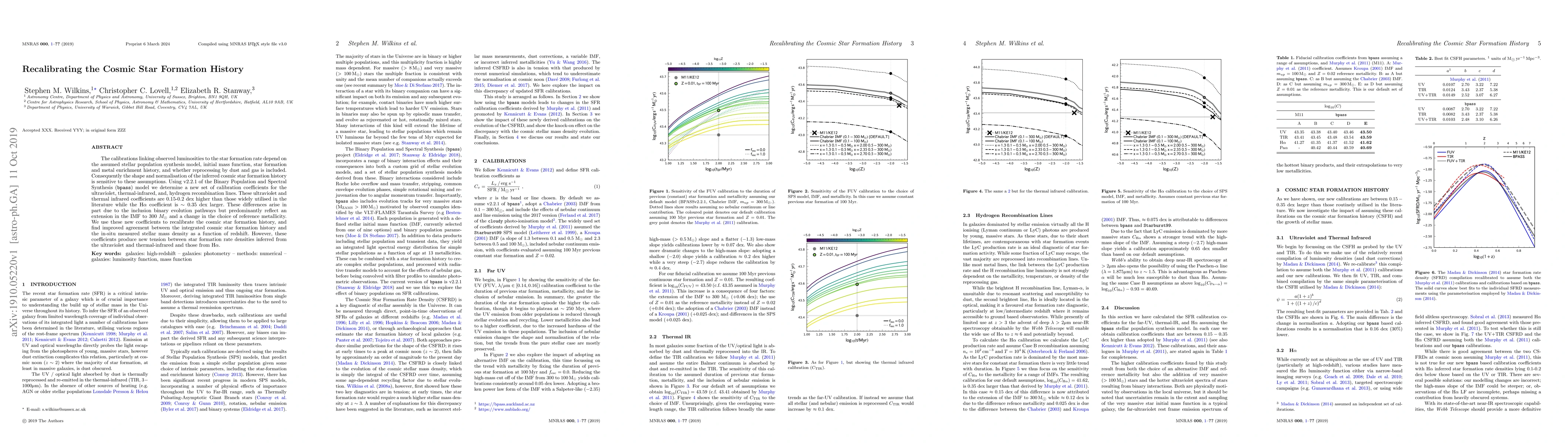 The calibrations linking observed luminosities to the star formation rate depend on the assumed stellar population synthesis model, initial mass function, star formation and metal enrichment history, and whether reprocessing by dust and gas is included. Consequently the shape and normalisation of the inferred cosmic star formation history is sensitive to these assumptions. Using v2.2.1 of the Binary Population and Spectral Synthesis (\bpass) model we determine a new set of calibration coefficients for the ultraviolet, thermal-infrared, and, hydrogen recombination lines. These ultraviolet and thermal infrared coefficients are 0.15-0.2 dex higher than those widely utilised in the literature while the H$\alpha$ coefficient is $\sim 0.35$ dex larger. These differences arise in part due to the inclusion binary evolution pathways but predominantly reflect an extension in the IMF to 300 $M_{\odot}$ and a change in the choice of reference metallicity. We use these new coefficients to recalibrate the cosmic star formation history, and find improved agreement between the integrated cosmic star formation history and the in-situ measured stellar mass density as a function of redshift. However, these coefficients produce new tension between star formation rate densities inferred from the ultraviolet and thermal-infrared and those from H$\alpha$.
