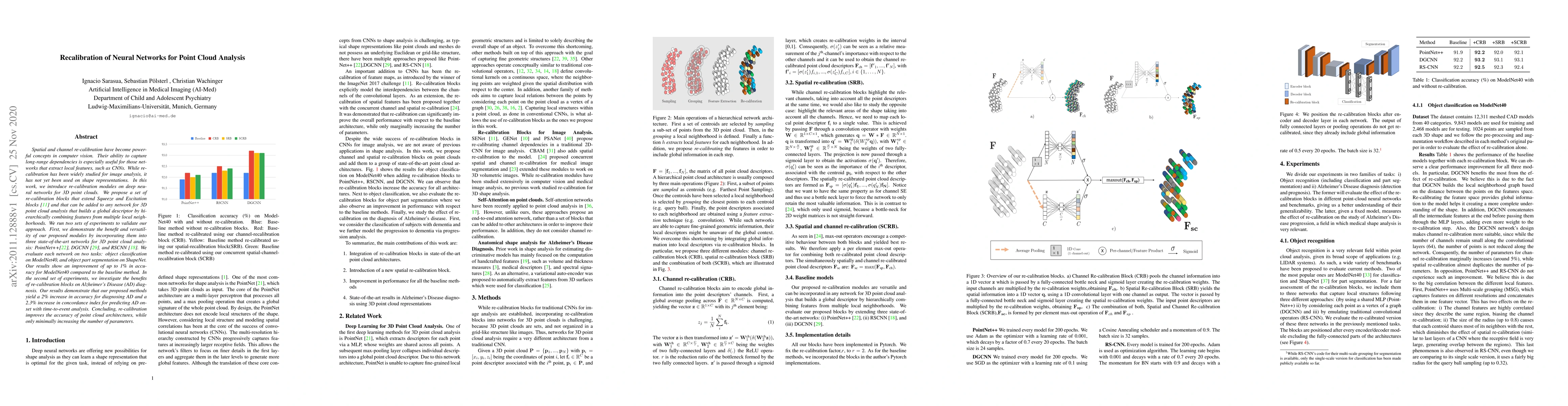 Researchers introduced re-calibration modules for 3D point cloud analysis, improving accuracy up to 1% for object classification and 2% for Alzheimer's Disease diagnosis.