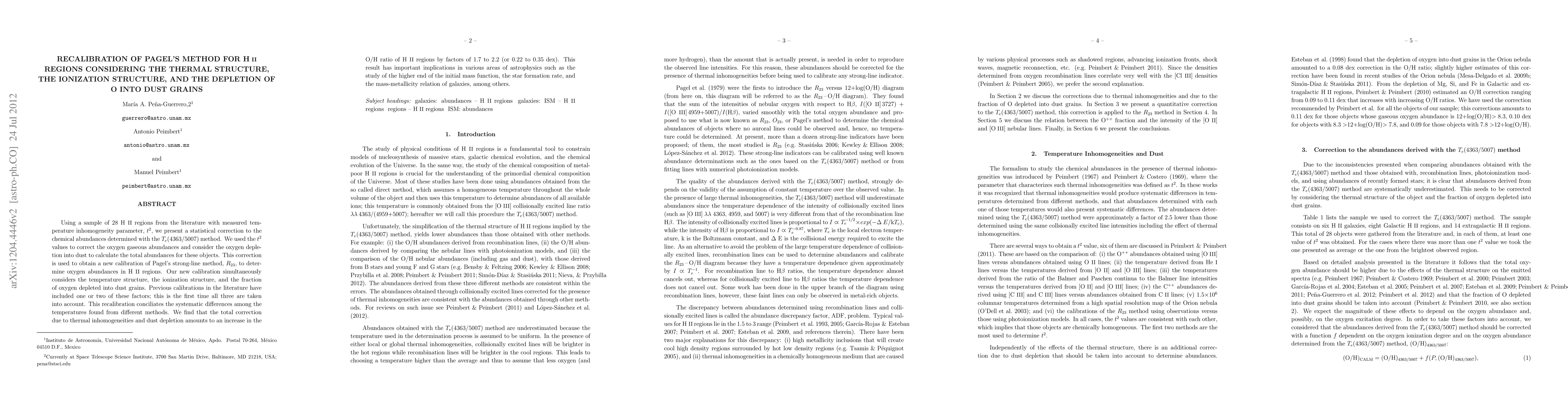 Using a sample of 28 HII regions from the literature with measured temperature inhomogeneity parameter, t^2, we present a statistical correction to the chemical abundances determined with the Te(4363/5007) method. We used the t^2 values to correct the oxygen gaseous abundances and consider the oxygen depletion into dust to calculate the total abundances for these objects. This correction is used to obtain a new calibration of Pagel's strong-line method, R_{23}, to determine oxygen abundances in HII regions. Our new calibration simultaneously considers the temperature structure, the ionization structure, and the fraction of oxygen depleted into dust grains. Previous calibrations in the literature have included one or two of these factors; this is the first time all three are taken into account. This recalibration conciliates the systematic differences among the temperatures found from different methods. We find that the total correction due to thermal inhomogeneities and dust depletion amounts to an increase in the O/H ratio of HII regions by factors of 1.7 to 2.2 (or 0.22 to 0.35 dex). This result has important implications in various areas of astrophysics such as the study of the higher end of the initial mass function, the star formation rate, and the mass-metallicity relation of galaxies, among others.