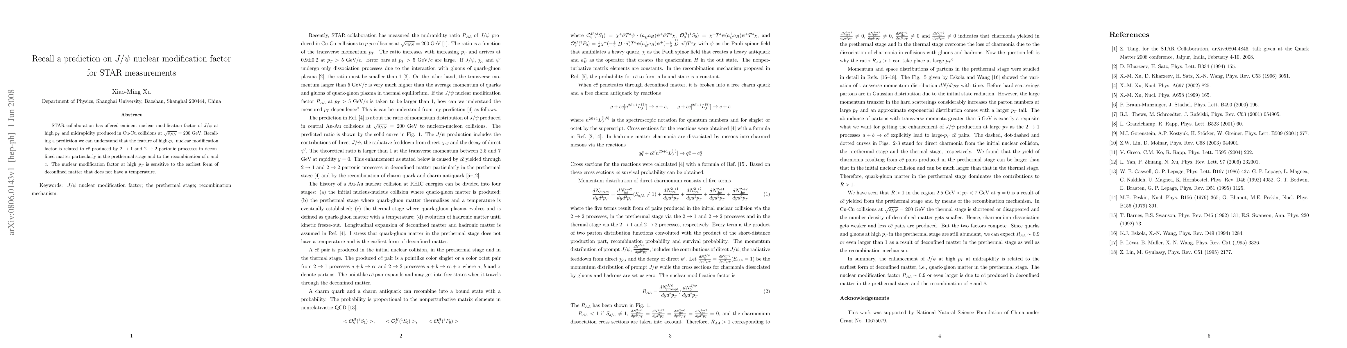 STAR collaboration has offered eminent nuclear modification factor of J/psi at high p_T and midrapidity produced in Cu-Cu collisions at \sqrt {s_{NN}}= 200 GeV. Recalling a prediction we can understand that the feature of high-p_T nuclear modification factor is related to c\bar c produced by 2-to-1 and 2-to-2 partonic processes in deconfined matter particularly in the prethermal stage and to the recombination of c and \bar c. The nuclear modification factor at high p_T is sensitive to the earliest form of deconfined matter that does not have a temperature.