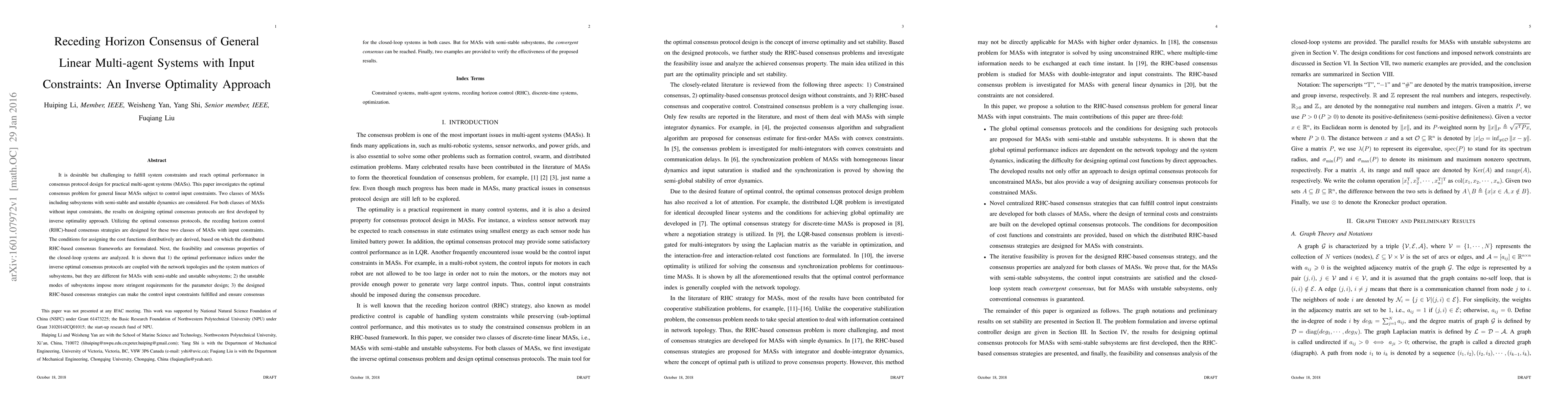 This paper develops optimal consensus protocols for general linear multi-agent systems (MASs) with input constraints using an inverse optimality approach. It proposes receding horizon control-based consensus strategies for both semi-stable and unstable subsystems, ensuring consensus while satisfying input constraints.