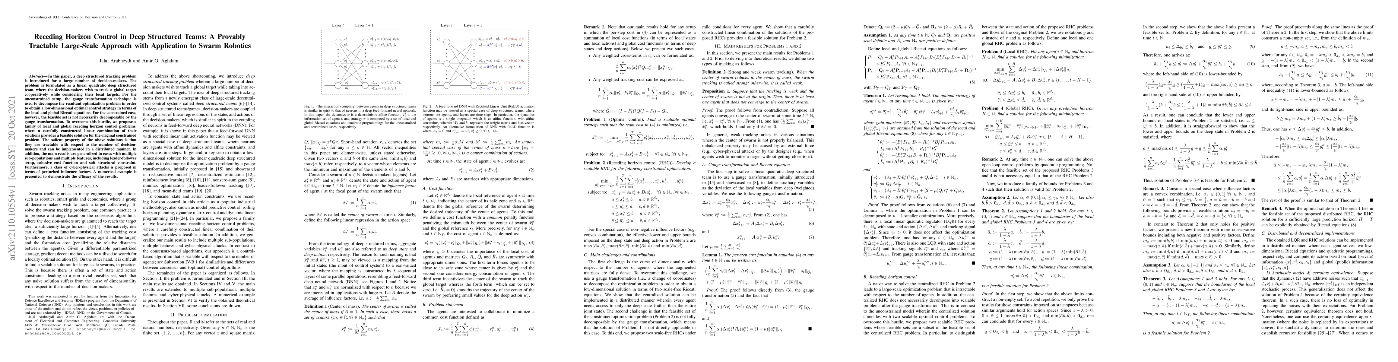 In this paper, a deep structured tracking problem is introduced for a large number of decision-makers. The problem is formulated as a linear quadratic deep structured team, where the decision-makers wish to track a global target cooperatively while considering their local targets. For the unconstrained setup, the gauge transformation technique is used to decompose the resultant optimization problem in order to obtain a low-dimensional optimal control strategy in terms of the local and global Riccati equations. For the constrained case, however, the feasible set is not necessarily decomposable by the gauge transformation. To overcome this hurdle, we propose a family of local and global receding horizon control problems, where a carefully constructed linear combination of their solutions provides a feasible solution for the original constrained problem. The salient property of the above solutions is that they are tractable with respect to the number of decision-makers and can be implemented in a distributed manner. In addition, the main results are generalized to cases with multiple sub-populations and multiple features, including leader-follower setup, cohesive cost function and soft structural constraint. Furthermore, a class of cyber-physical attacks is proposed in terms of perturbed influence factors. A numerical example is presented to demonstrate the efficacy of the results.