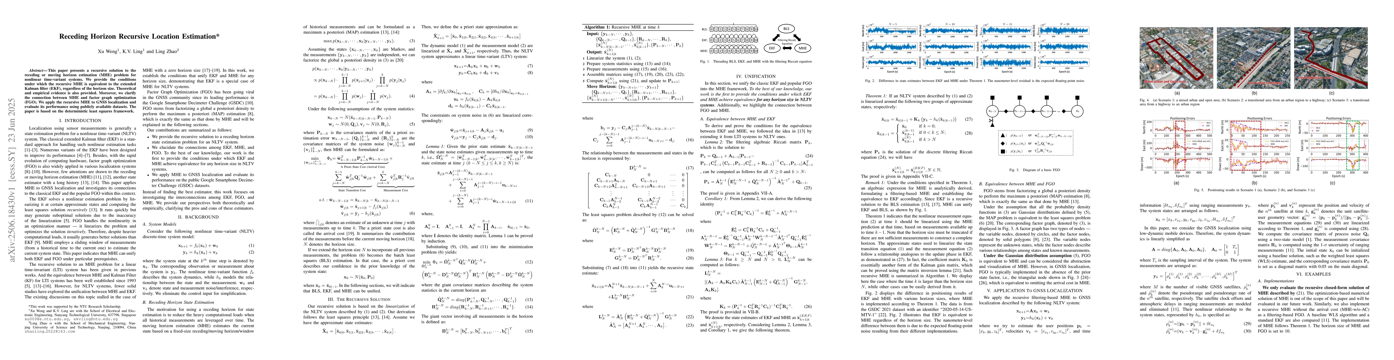This paper presents a recursive solution to the receding or moving horizon estimation (MHE) problem for nonlinear time-variant systems. We provide the conditions under which the recursive MHE is equivalent to the extended Kalman filter (EKF), regardless of the horizon size. Theoretical and empirical evidence is also provided. Moreover, we clarify the connection between MHE and factor graph optimization (FGO). We apply the recursive MHE to GNSS localization and evaluate its performance using publicly available datasets. The paper is based on the deterministic least squares framework.