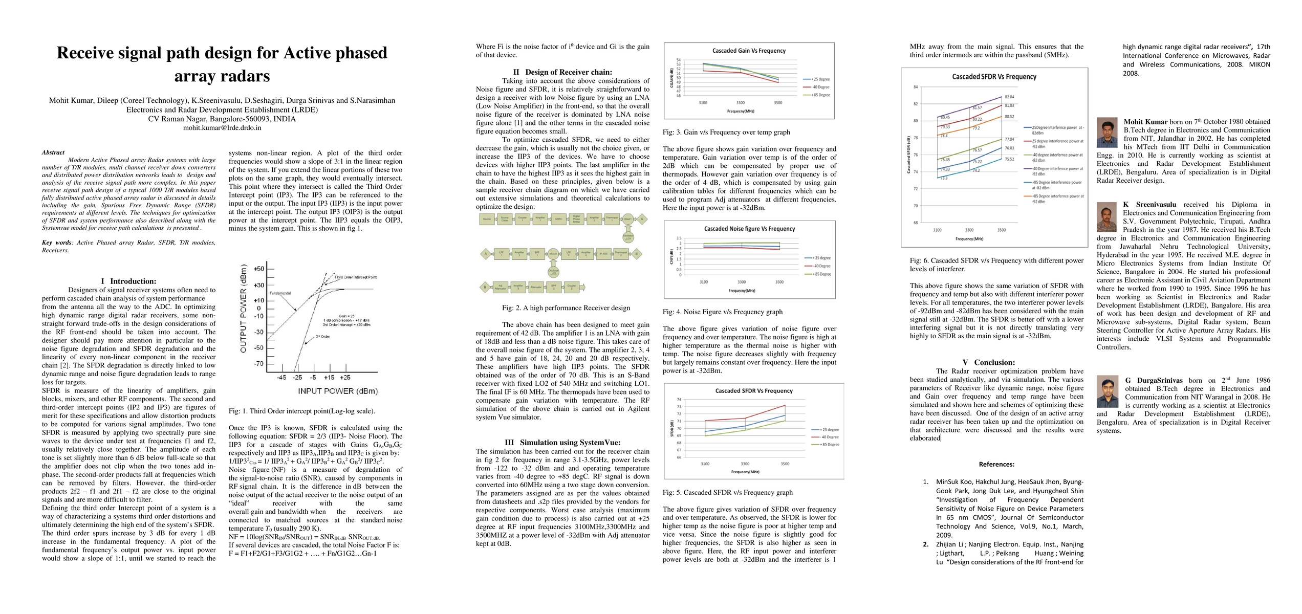This paper explores the design and optimization of the receive signal path for a 1000 T/R module active phased array radar, focusing on gain and Spurious Free Dynamic Range (SFDR) requirements, and presents techniques for enhancing performance using Systemvue modeling.