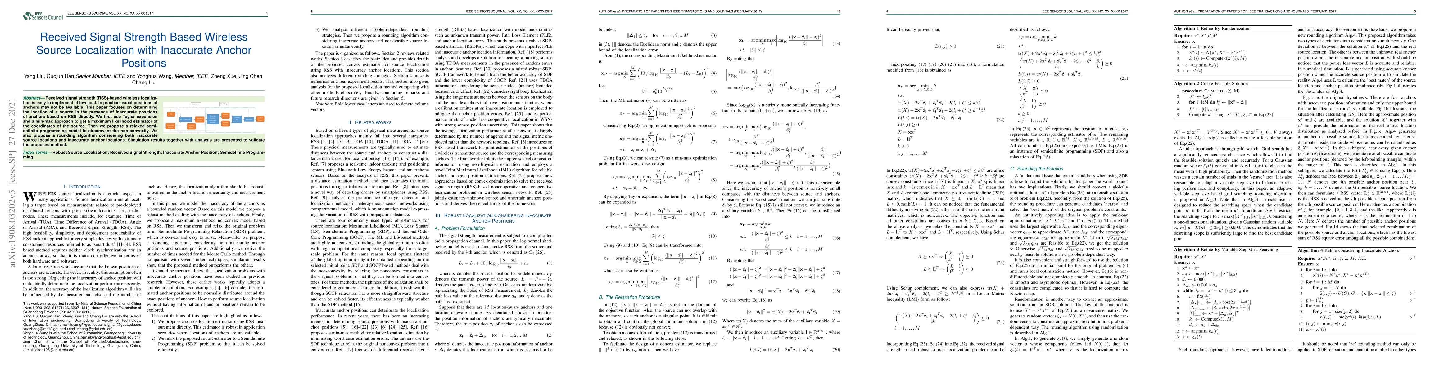 Received signal strength (RSS)-based wireless localization is easy to implement at low cost. In practice,exact positions of anchors may not be available. This paper focuses on determining the location of a source in the presence of inaccurate positions of anchors based on RSS directly. We first use Taylor expansion and a min-max approach to get a maximum likelihood estimator of the coordinates of the source. Then we propose a relaxed semi-definite programming model to circumvent the non-convexity. We also propose a rounding algorithm considering both inaccurate source location and inaccurate anchor locations.Simulation results together with analysis are presented to validate the proposed method.