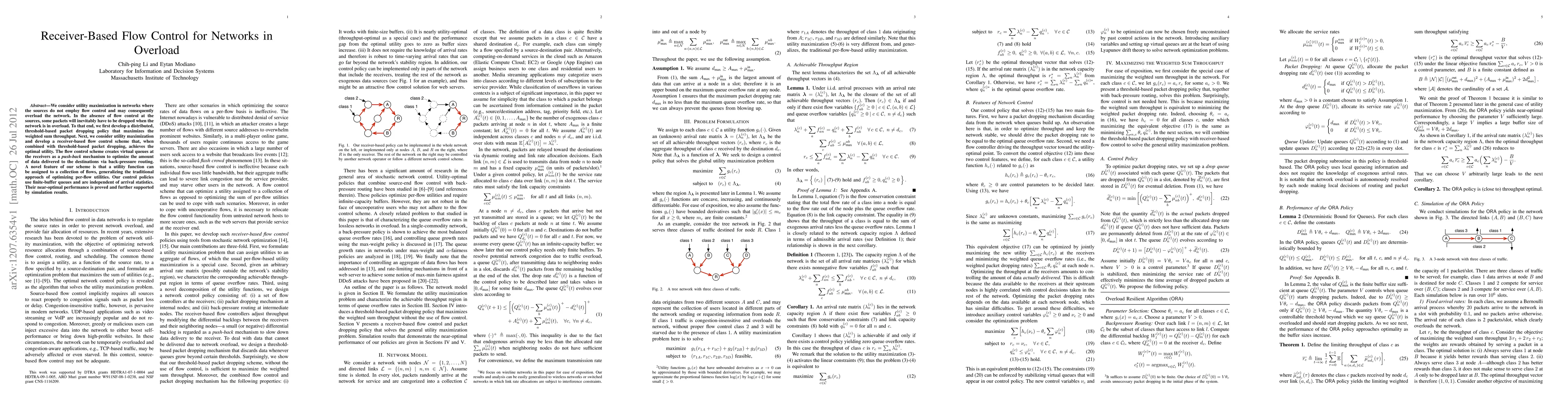 Researchers developed a receiver-based flow control scheme to optimize network throughput in overload conditions, maximizing utility while minimizing packet drops. Their approach uses virtual queues at receivers to manage data delivery via back-pressure routing, achieving near-optimal performance with finite-buffer queues.