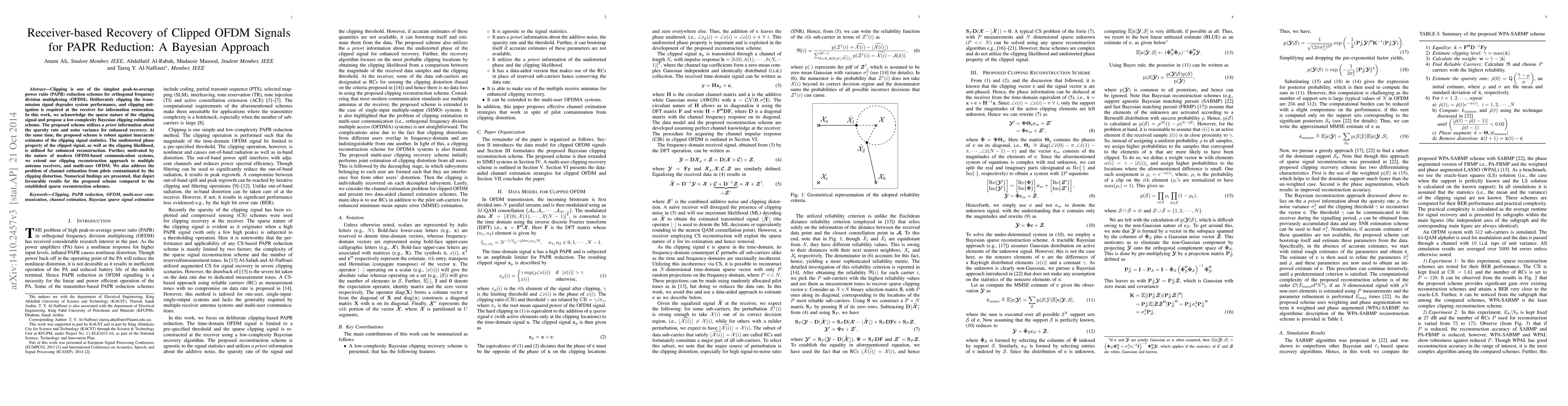 Clipping is one of the simplest peak-to-average power ratio (PAPR) reduction schemes for orthogonal frequency division multiplexing (OFDM). Deliberately clipping the transmission signal degrades system performance, and clipping mitigation is required at the receiver for information restoration. In this work, we acknowledge the sparse nature of the clipping signal and propose a low-complexity Bayesian clipping estimation scheme. The proposed scheme utilizes a priori information about the sparsity rate and noise variance for enhanced recovery. At the same time, the proposed scheme is robust against inaccurate estimates of the clipping signal statistics. The undistorted phase property of the clipped signal, as well as the clipping likelihood, is utilized for enhanced reconstruction. Further, motivated by the nature of modern OFDM-based communication systems, we extend our clipping reconstruction approach to multiple antenna receivers, and multi-user OFDM. We also address the problem of channel estimation from pilots contaminated by the clipping distortion. Numerical findings are presented, that depict favourable results for the proposed scheme compared to the established sparse reconstruction schemes.