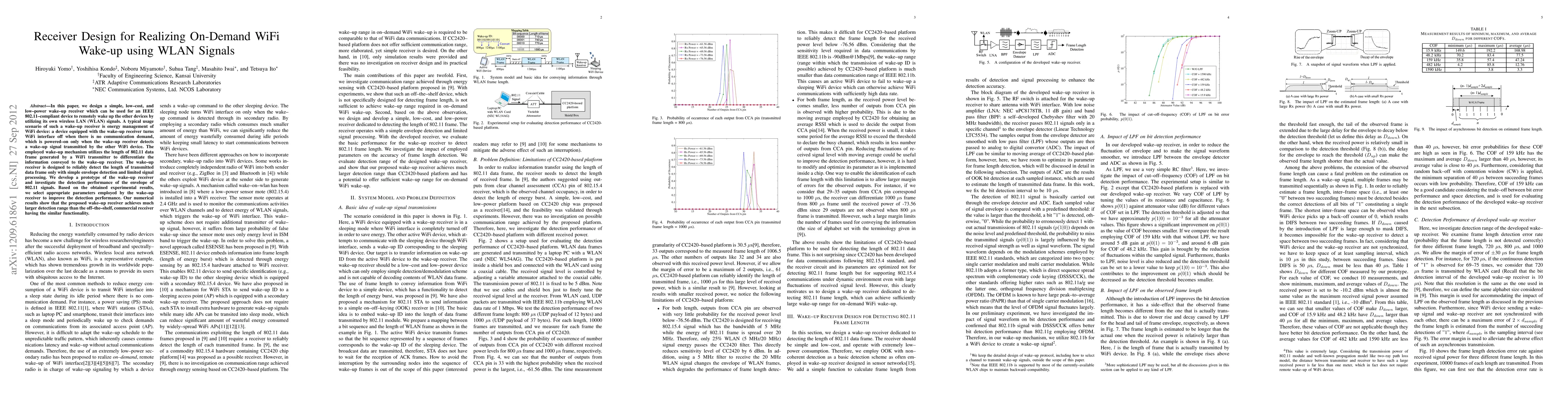 A novel wake-up receiver design that uses envelope detection and limited signal processing, which can reduce energy consumption and improve network efficiency.