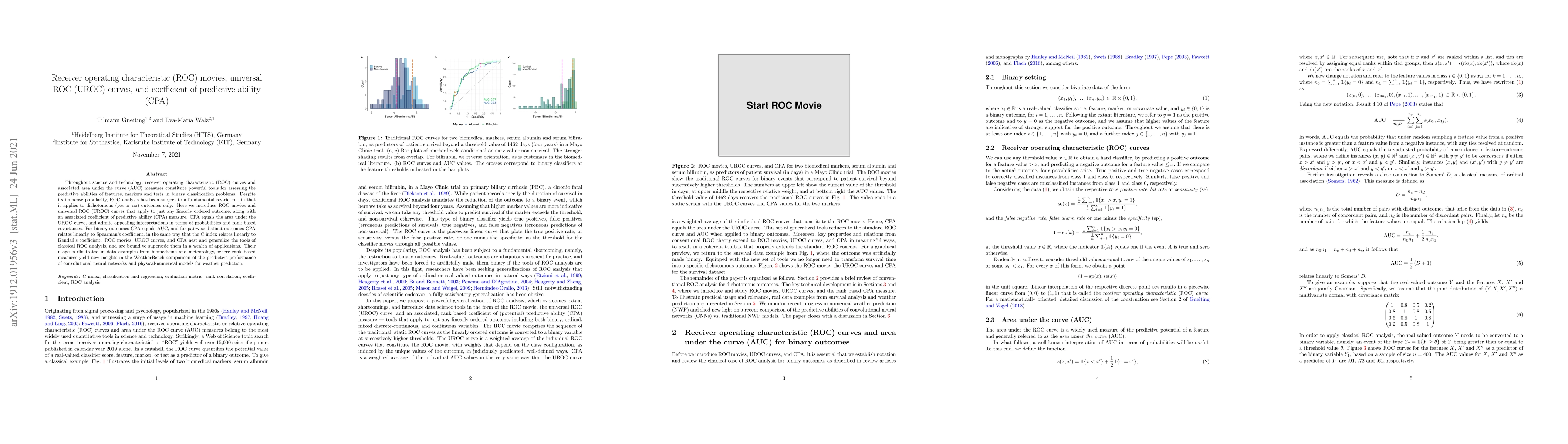 Throughout science and technology, receiver operating characteristic (ROC) curves and associated area under the curve (AUC) measures constitute powerful tools for assessing the predictive abilities of features, markers and tests in binary classification problems. Despite its immense popularity, ROC analysis has been subject to a fundamental restriction, in that it applies to dichotomous (yes or no) outcomes only. Here we introduce ROC movies and universal ROC (UROC) curves that apply to just any linearly ordered outcome, along with an associated coefficient of predictive ability (CPA) measure. CPA equals the area under the UROC curve, and admits appealing interpretations in terms of probabilities and rank based covariances. For binary outcomes CPA equals AUC, and for pairwise distinct outcomes CPA relates linearly to Spearman's coefficient, in the same way that the C index relates linearly to Kendall's coefficient. ROC movies, UROC curves, and CPA nest and generalize the tools of classical ROC analysis, and are bound to supersede them in a wealth of applications. Their usage is illustrated in data examples from biomedicine and meteorology, where rank based measures yield new insights in the WeatherBench comparison of the predictive performance of convolutional neural networks and physical-numerical models for weather prediction.
