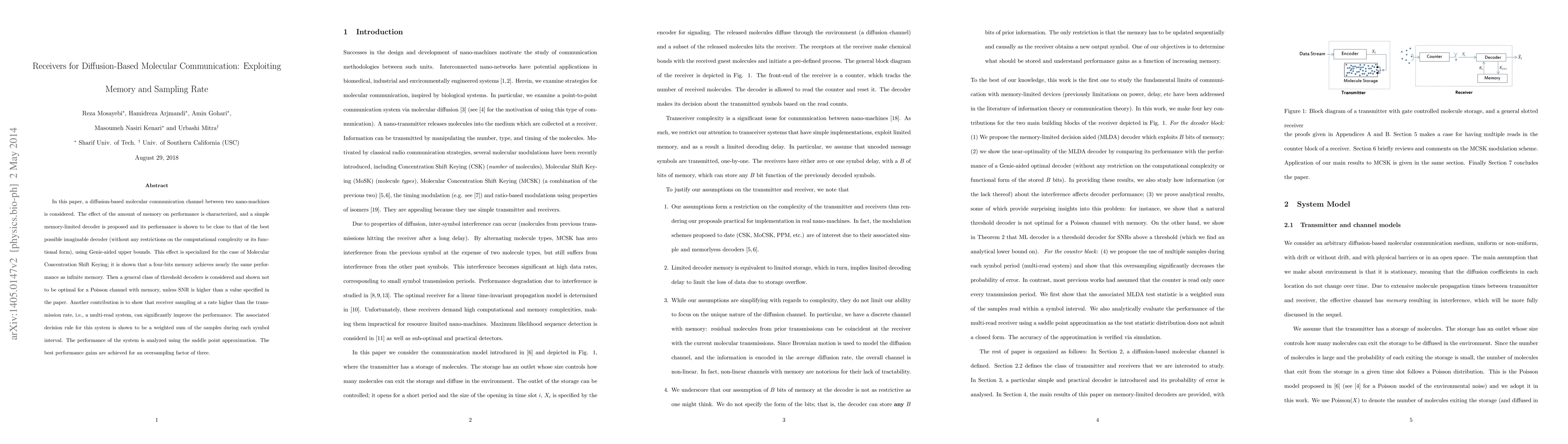 In this paper, a diffusion-based molecular communication channel between two nano-machines is considered. The effect of the amount of memory on performance is characterized, and a simple memory-limited decoder is proposed and its performance is shown to be close to that of the best possible imaginable decoder (without any restriction on the computational complexity or its functional form), using Genie-aided upper bounds. This effect is specialized for the case of Molecular Concentration Shift Keying; it is shown that a four-bits memory achieved nearly the same performance as infinite memory. Then a general class of threshold decoders is considered and shown not to be optimal for Poisson channel with memory, unless SNR is higher than a value specified in the paper. Another contribution is to show that receiver sampling at a rate higher than the transmission rate, i.e., a multi-read system, can significantly improve the performance. The associated decision rule for this system is shown to be a weighted sum of the samples during each symbol interval. The performance of the system is analyzed using the saddle point approximation. The best performance gains are achieved for an oversampling factor of three.