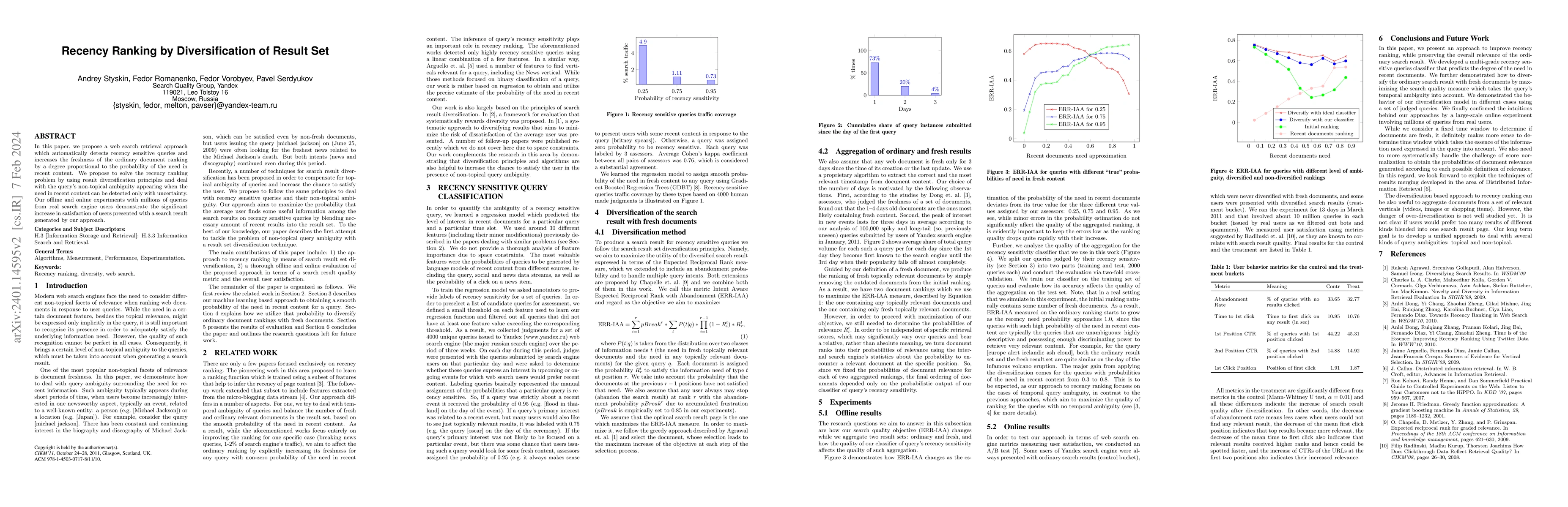 This paper introduces a web search retrieval method that enhances the recency of search results by detecting queries needing recent content and diversifying the ranking accordingly. Experiments show a notable improvement in user satisfaction with the proposed approach.