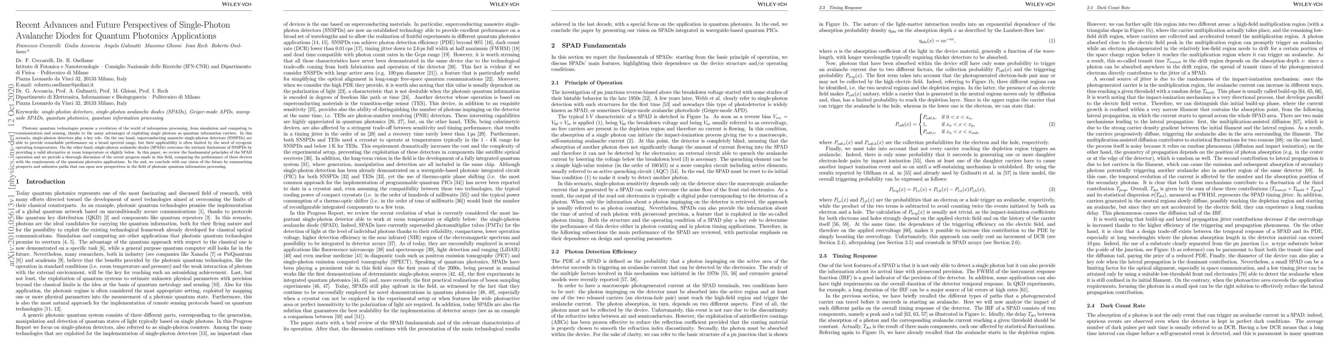 Recent advances in single-photon avalanche diodes offer a promising alternative to superconducting nanowire detectors for quantum photonics applications at room temperature or slightly below. The study reviews the fundamental principles of SPAD operation and discusses recent progress, highlighting prospects for future developments in photonic quantum information processing.
