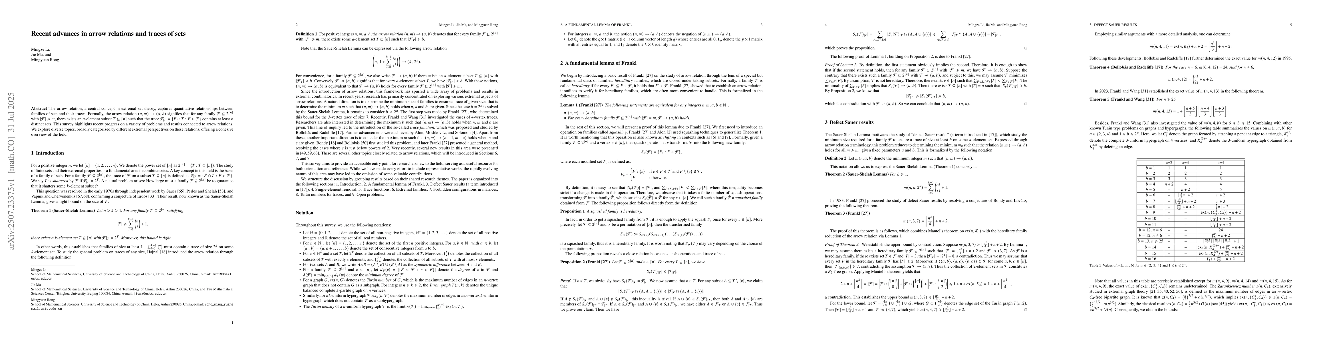 The arrow relation, a central concept in extremal set theory, captures quantitative relationships between families of sets and their traces. Formally, the arrow relation $(n, m) \rightarrow (a, b)$ signifies that for any family $\mathcal{F} \subseteq 2^{[n]}$ with $|\mathcal{F}| \geqslant m$, there exists an $a$-element subset $T \subseteq [n]$ such that the trace $\mathcal{F}_{|T} = \{ F \cap T : F \in \mathcal{F} \}$ contains at least $b$ distinct sets. This survey highlights recent progress on a variety of problems and results connected to arrow relations. We explore diverse topics, broadly categorized by different extremal perspectives on these relations, offering a cohesive overview of the field.