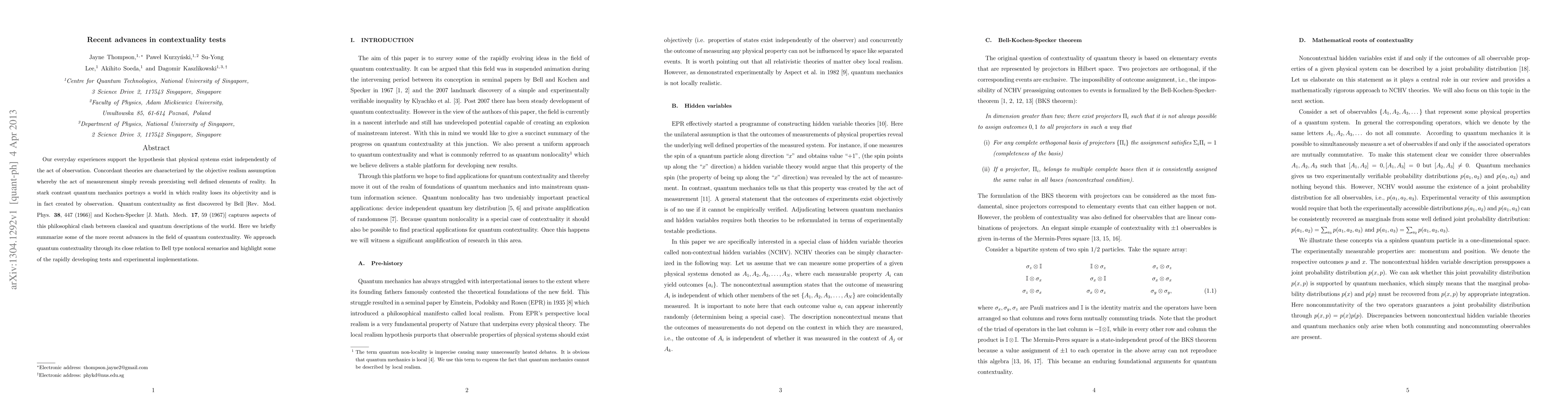 Our everyday experiences support the hypothesis that physical systems exist independently of the act of observation. Concordant theories are characterized by the objective realism assumption whereby the act of measurement simply reveals preexisting well defined elements of reality. In stark contrast quantum mechanics portrays a world in which reality loses its objectivity and is in fact created by observation. Quantum contextuality as first discovered by Bell [Rev. Mod. Phys. 38, 447 (1966)] and Kochen-Specker [J. Math. Mech. 17, 59 (1967)] captures aspects of this philosophical clash between classical and quantum descriptions of the world. Here we briefly summarize some of the more recent advances in the field of quantum contextuality. We approach quantum contextuality through its close relation to Bell type nonlocal scenarios and highlight some of the rapidly developing tests and experimental implementations.