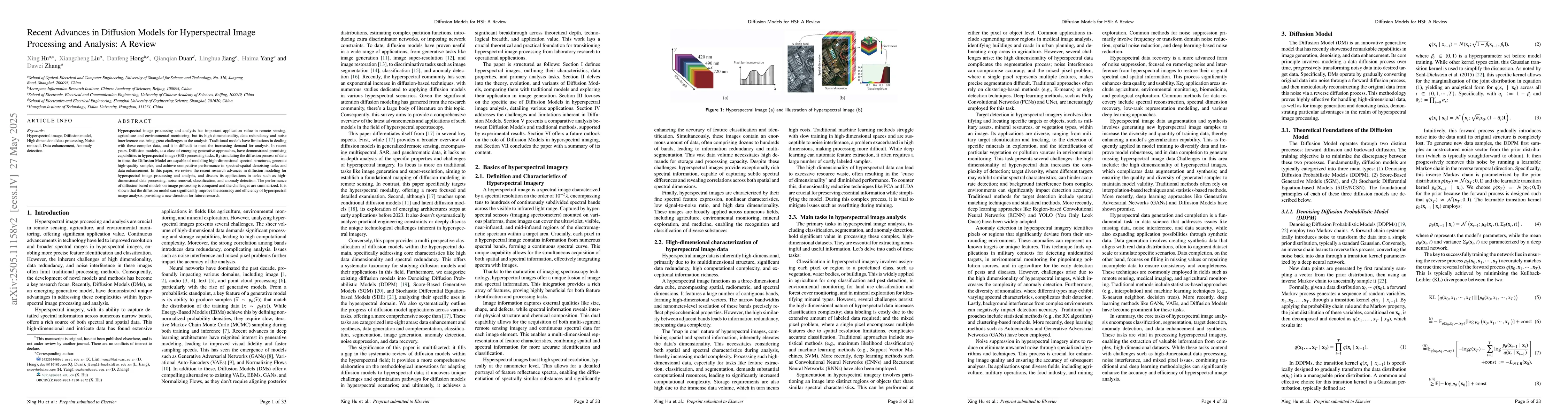 The paper reviews recent research advances in diffusion modeling for hyperspectral image processing and analysis, comparing the performance of diffusion-based models on image processing tasks and summarizing challenges.