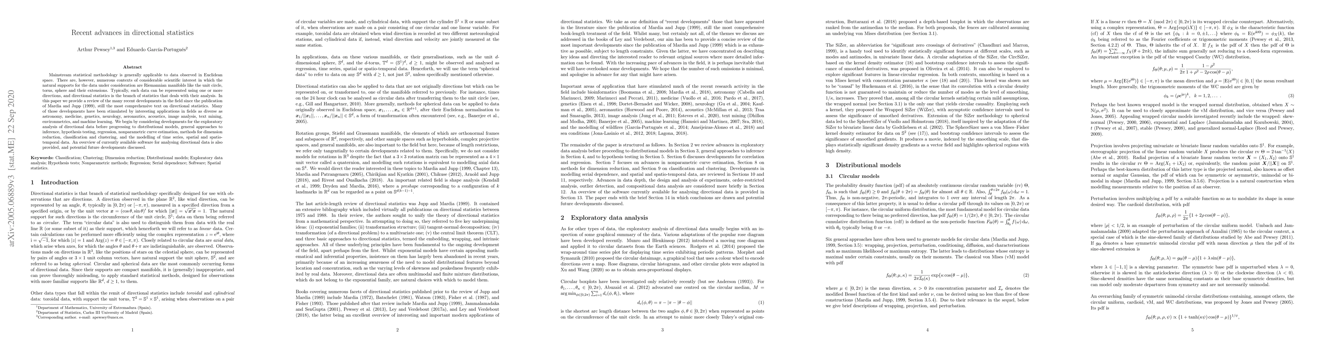 This paper reviews recent advancements in directional statistics, focusing on exploratory analysis, distributional models, and various inferential methods, with applications spanning diverse fields. It also covers software tools and discusses future directions in the field.