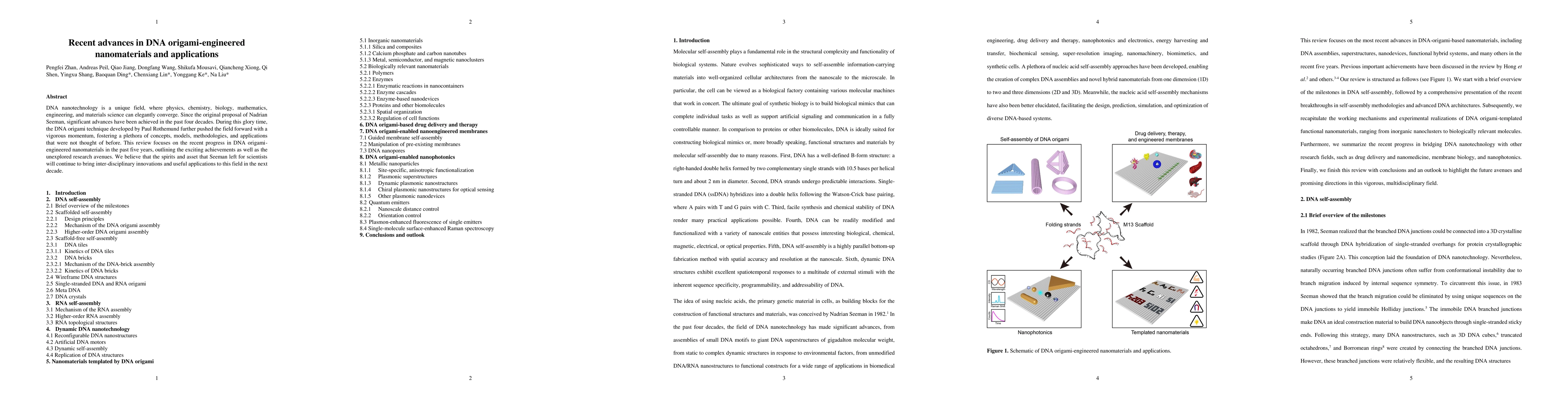 This review highlights recent advancements in DNA origami nanomaterials over the past five years, showcasing novel concepts, methodologies, and applications stemming from Paul Rothemund's DNA origami technique. The paper also identifies unexplored research avenues, emphasizing the potential for continued interdisciplinary innovation in the field.