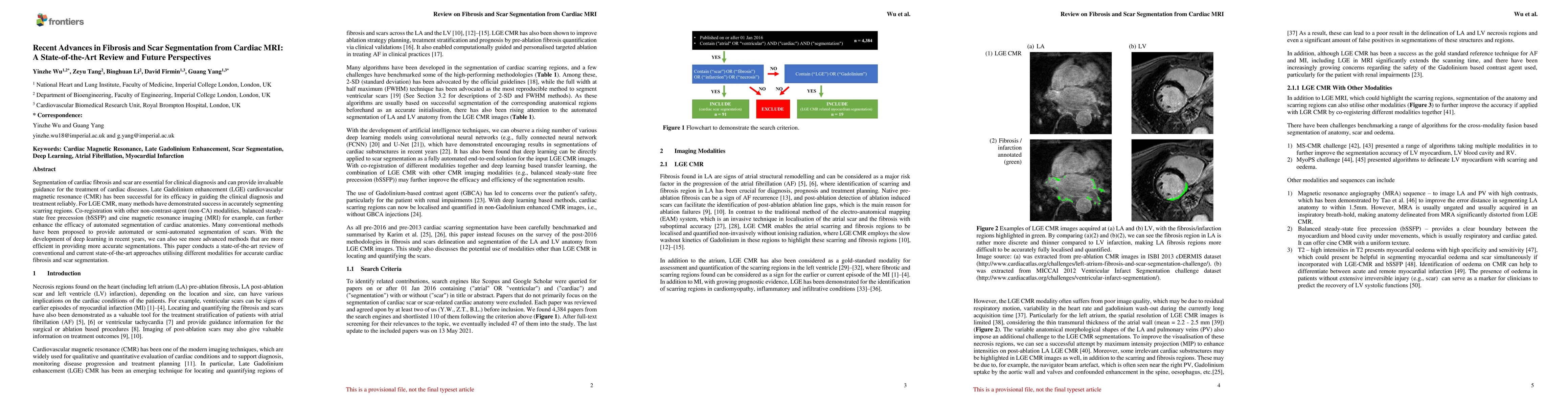 This paper reviews recent advances in segmenting cardiac fibrosis and scar using MRI, highlighting the efficacy of late gadolinium enhancement (LGE) and deep learning techniques. It also discusses the integration of non-contrast modalities for improved segmentation accuracy.