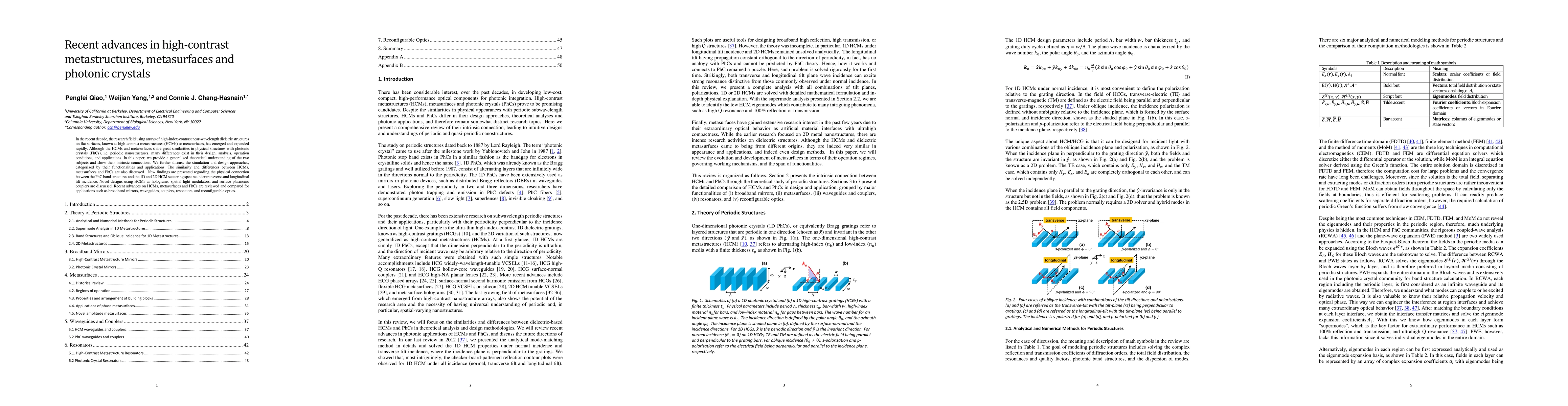 This paper reviews recent advancements in high-contrast metastructures (HCMs), metasurfaces, and photonic crystals (PhCs), comparing their design, analysis, and applications. It highlights novel connections between PhC band structures and HCM scattering spectra, and discusses new HCM-based designs for various optical functionalities.