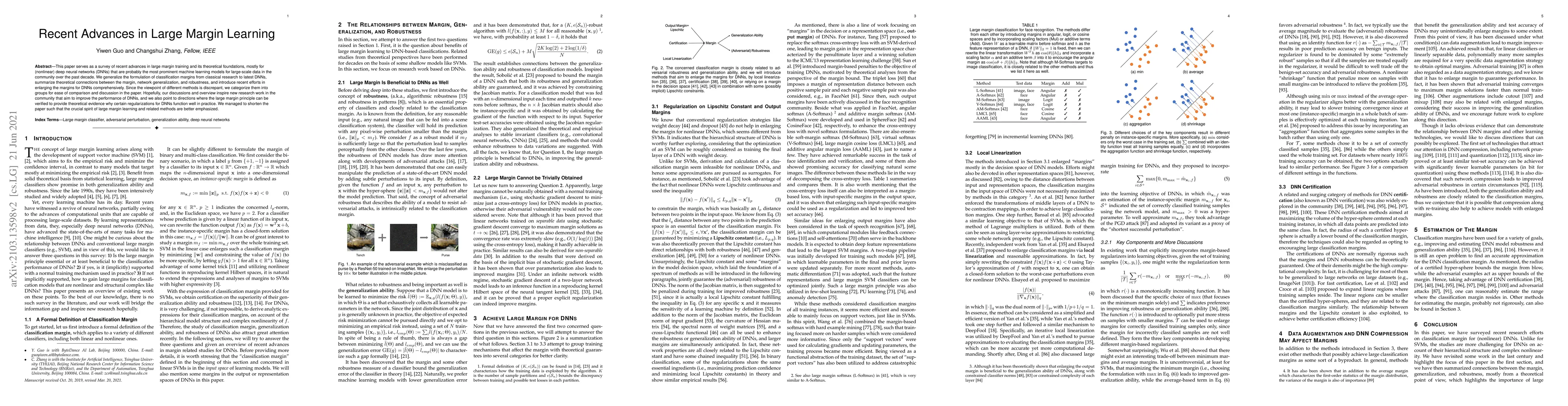 This paper serves as a survey of recent advances in large margin training and its theoretical foundations, mostly for (nonlinear) deep neural networks (DNNs) that are probably the most prominent machine learning models for large-scale data in the community over the past decade. We generalize the formulation of classification margins from classical research to latest DNNs, summarize theoretical connections between the margin, network generalization, and robustness, and introduce recent efforts in enlarging the margins for DNNs comprehensively. Since the viewpoint of different methods is discrepant, we categorize them into groups for ease of comparison and discussion in the paper. Hopefully, our discussions and overview inspire new research work in the community that aim to improve the performance of DNNs, and we also point to directions where the large margin principle can be verified to provide theoretical evidence why certain regularizations for DNNs function well in practice. We managed to shorten the paper such that the crucial spirit of large margin learning and related methods are better emphasized.