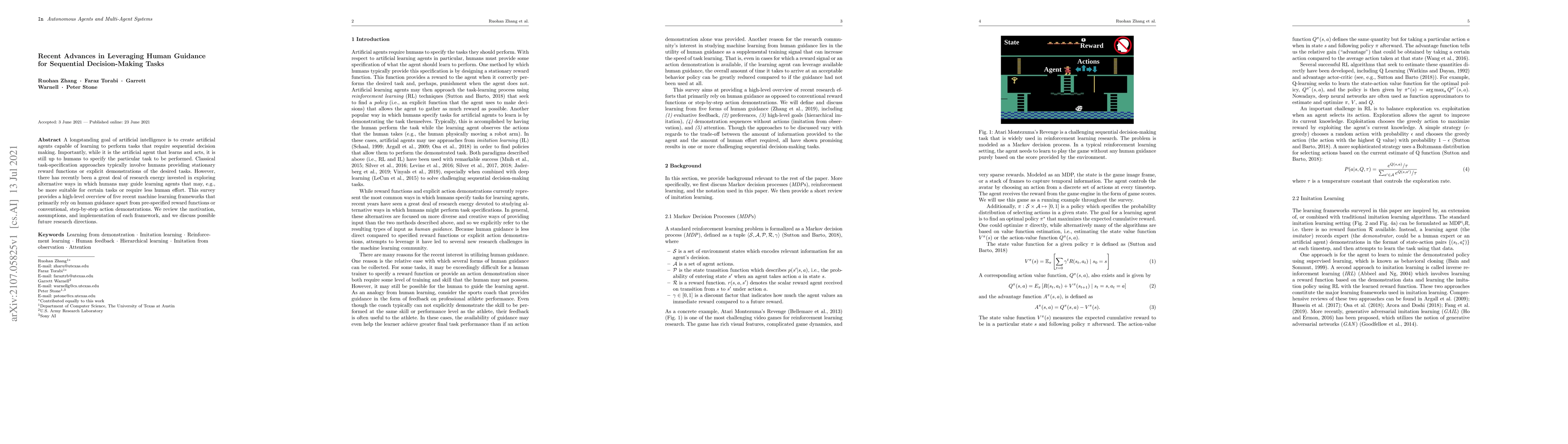 This paper surveys recent advances in leveraging human guidance for sequential decision-making tasks, focusing on five innovative machine learning frameworks that reduce human effort compared to traditional methods. It discusses the motivation, assumptions, and implementation of each framework, and outlines potential future research directions.