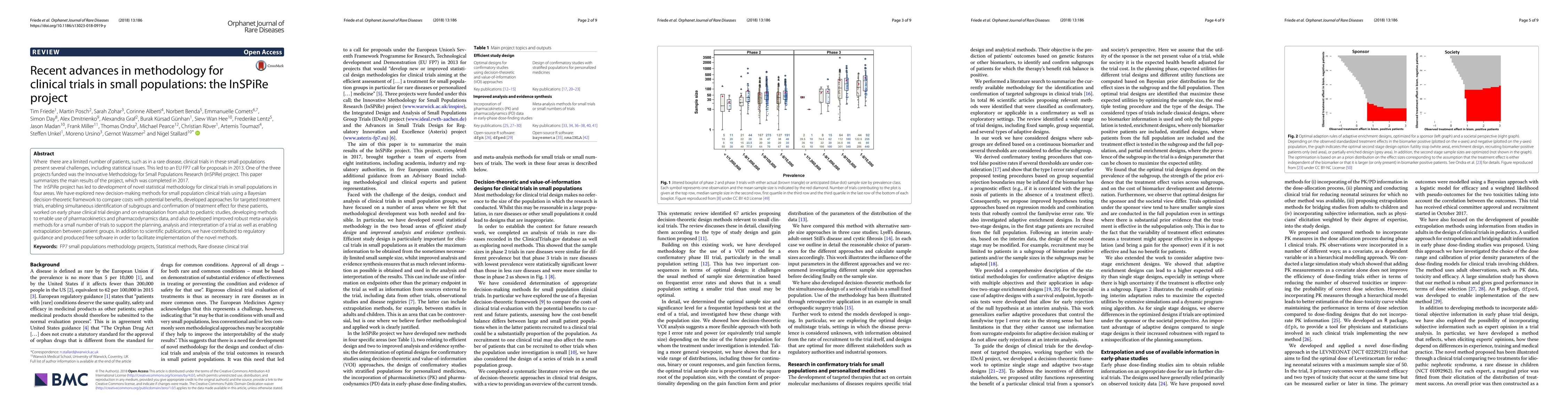 The InSPiRe project developed novel statistical methodologies for clinical trials in small populations, focusing on Bayesian decision-making, targeted treatment trials, early phase design, and robust meta-analysis, while also contributing to regulatory guidance and providing free software for implementation.