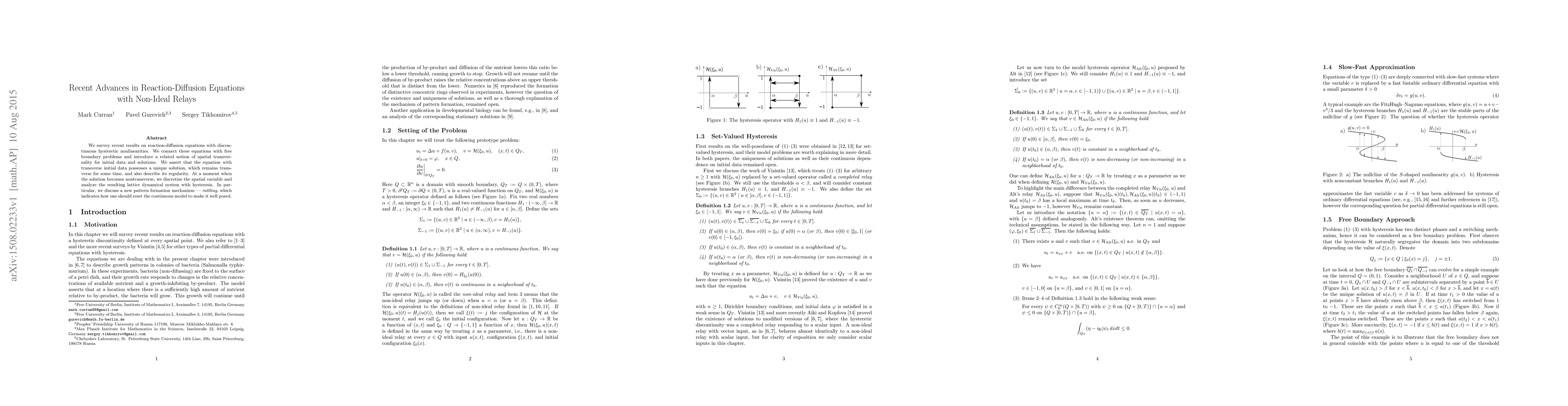 Researchers investigate reaction-diffusion equations with non-ideal relays, finding a unique solution that remains transverse for some time before becoming nontransverse, requiring a 'rattling' mechanism to reset the model.