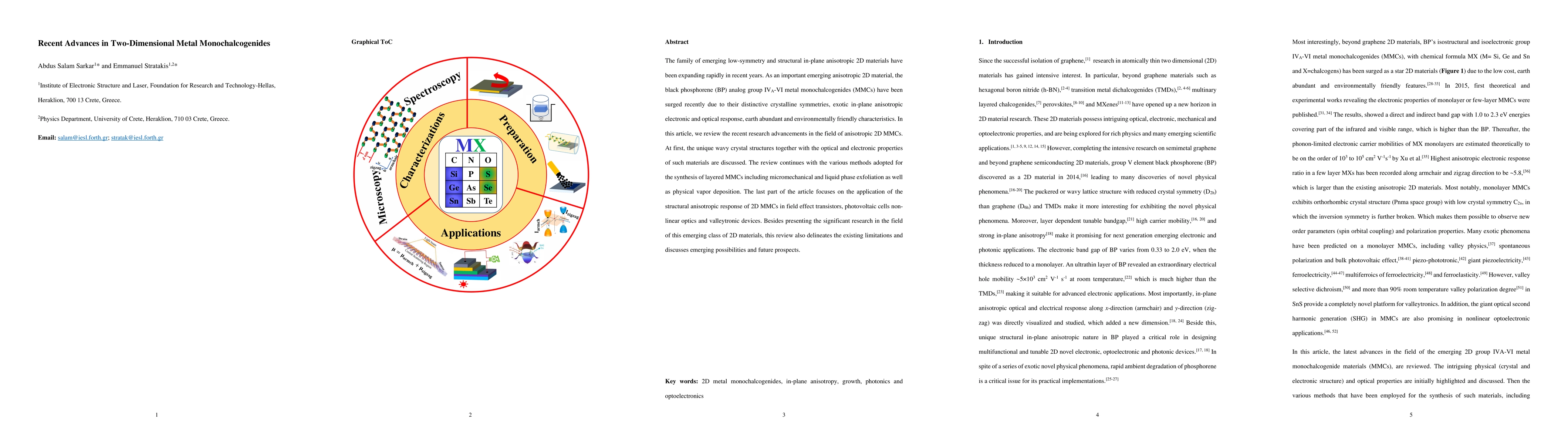 Recent research on two-dimensional metal monochalcogenides reveals their unique properties and potential applications in electronics, optics, and more, with advancements in synthesis methods and device development.