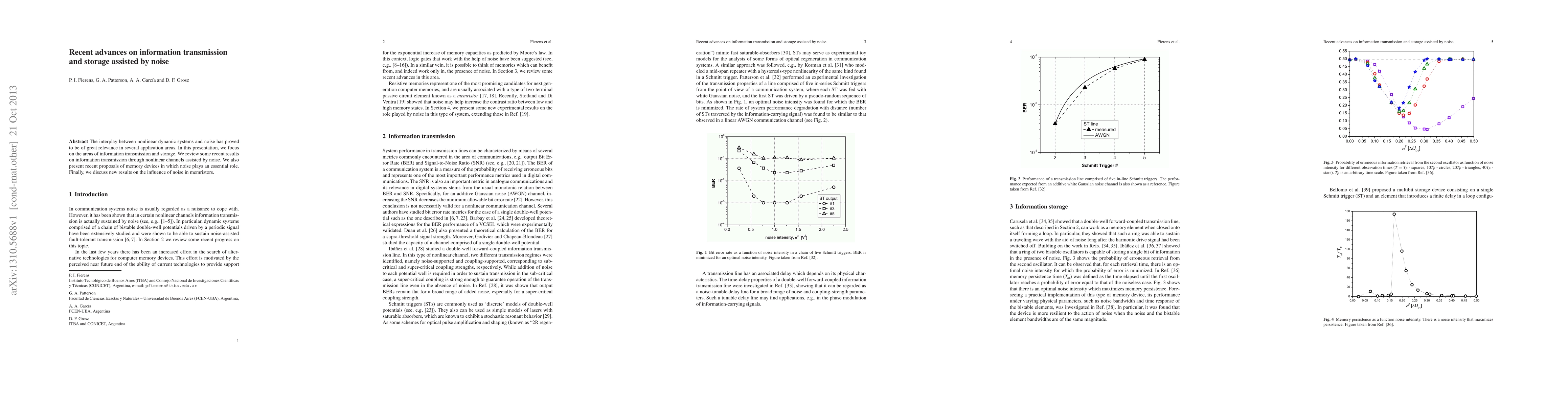 This paper reviews recent advancements in information transmission through nonlinear channels aided by noise and proposes innovative memory devices where noise is crucial. It also discusses the impact of noise on memristors, highlighting its essential role in both information storage and transmission.