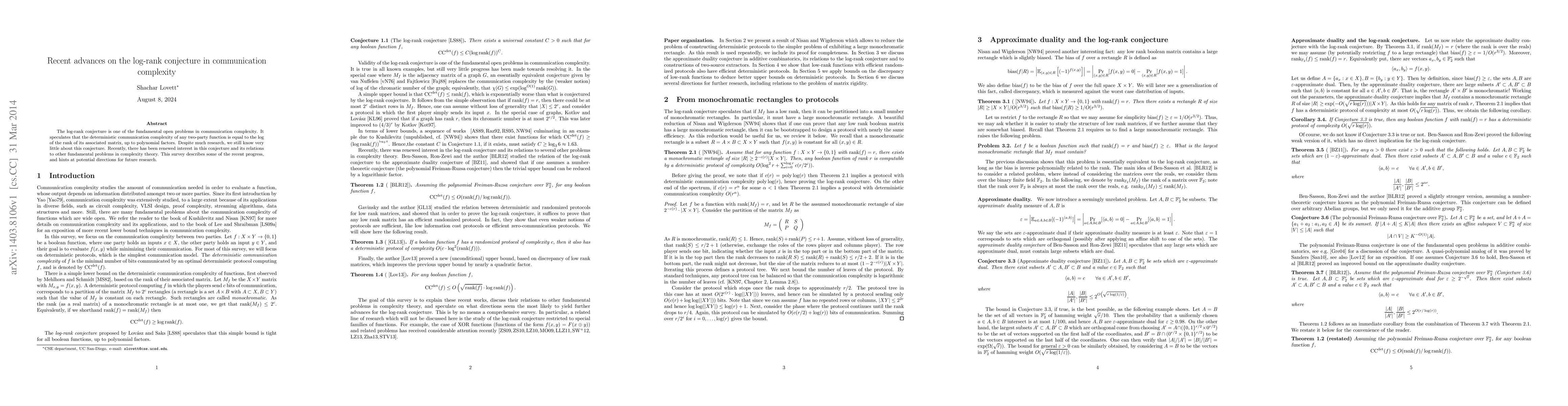 This paper surveys recent advances on the log-rank conjecture in communication complexity, highlighting its fundamental role and the renewed interest in its relation to other complexity theory problems, while noting the limited progress made so far. It suggests potential future research directions based on these developments.