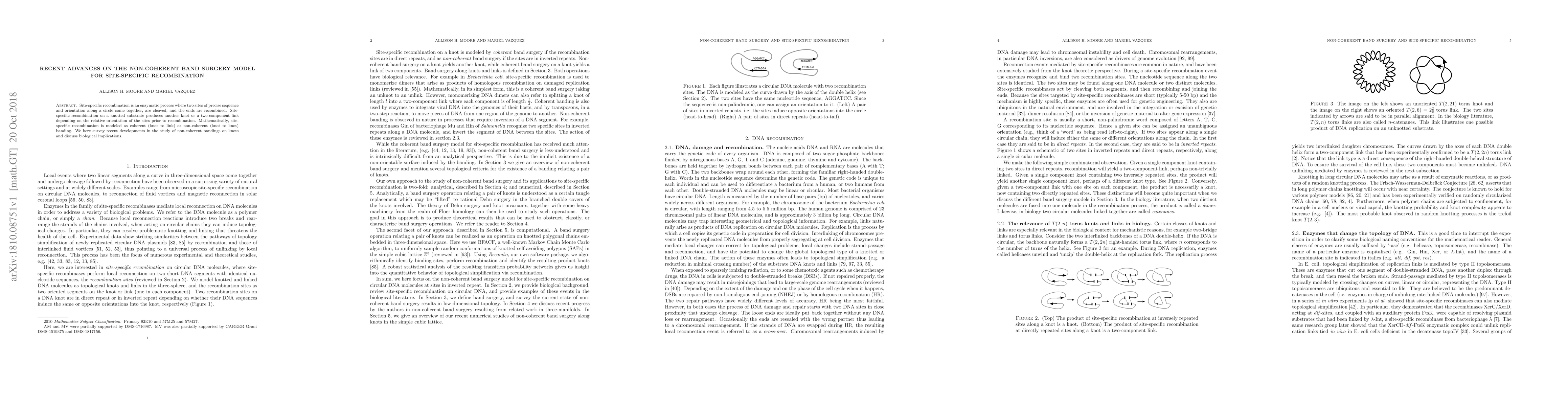 Site-specific recombination is an enzymatic process where two sites of precise sequence and orientation along a circle come together, are cleaved, and the ends are recombined. Site-specific recombination on a knotted substrate produces another knot or a two-component link depending on the relative orientation of the sites prior to recombination. Mathematically, site-specific recombination is modeled as coherent (knot to link) or non-coherent (knot to knot) banding. We here survey recent developments in the study of non-coherent bandings on knots and discuss biological implications.