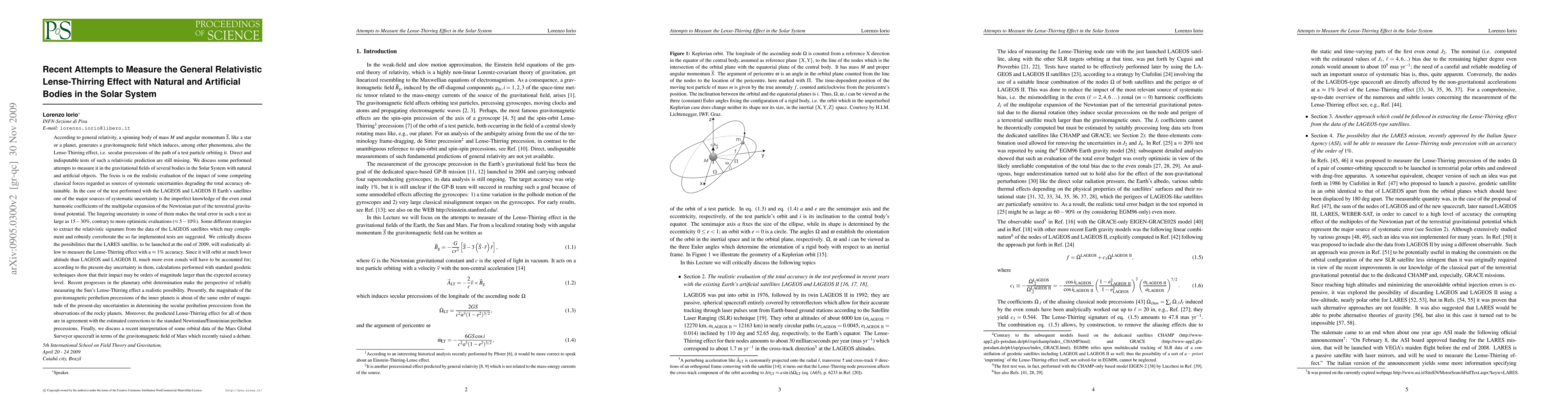 This paper reviews recent efforts to measure the Lense-Thirring effect, a general relativistic phenomenon causing precession in the orbit of test particles around spinning massive bodies, using both natural and artificial objects in the Solar System. It emphasizes the evaluation of systematic uncertainties from competing classical forces.