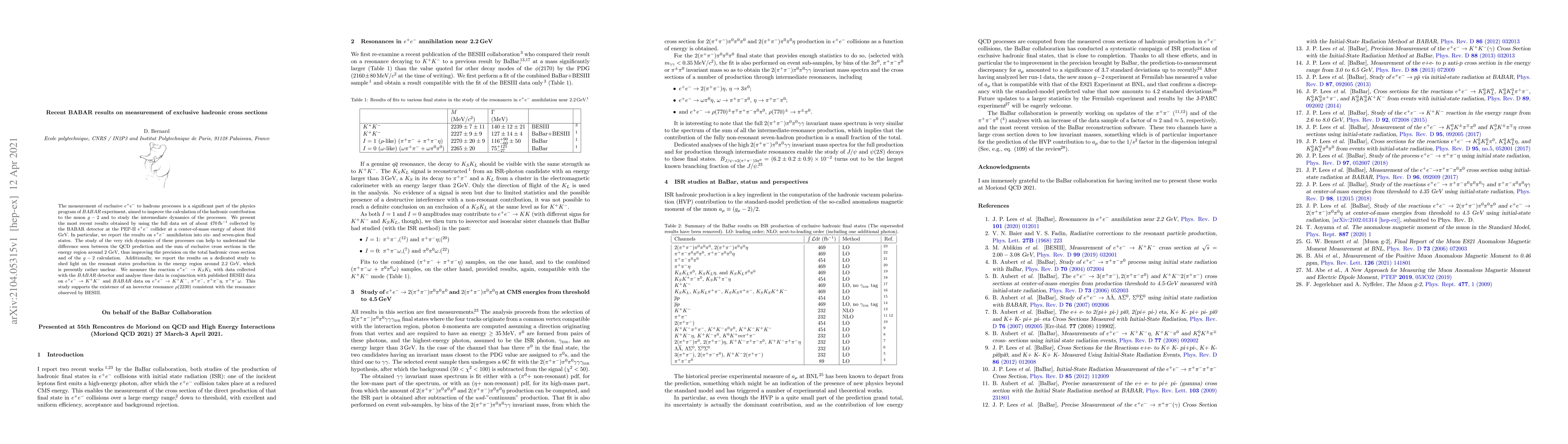 Researchers at the BABAR experiment have measured exclusive $e^+e^-$ to hadrons processes, providing new insights into the hadronic contribution to the muon $g-2$ and understanding intermediate dynamics, including the discovery of a new isovector resonance $ ho(2230)$.